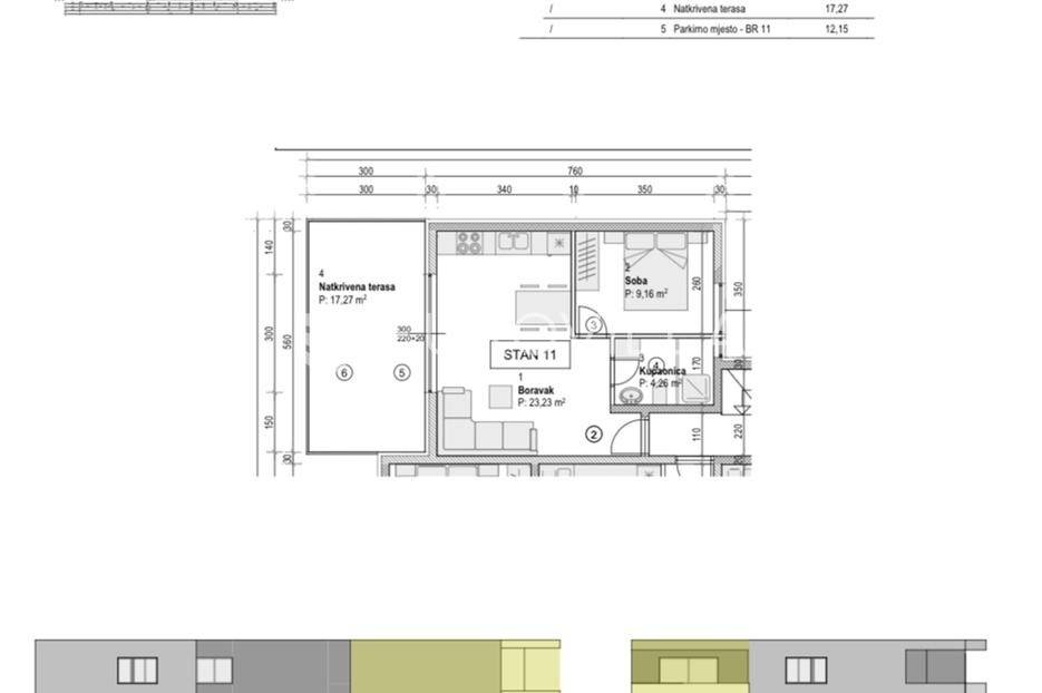 Predstavljamo vam projekt moderne novogradnje u novoizgrađenom dijelu Povljane na otoku Pagu. Zgrada se sastoji od ukupno 15 stambenih jedinica raspoređenih na 3 etaže. Udaljena je svega 350 metara od mora, lokalnih plaža i ostalih sadržaja potrebnih za kvalitetan i ispunjen život ili odmor.STAN 11 / 2. kat / 45,28 m²Stan S11 se nalazi na 2. katu zgrade te ima neto korisnu površinu od 45,28 m². Sastoji se od otvorenog prostora dnevnog boravka, kuhinje i blagovaonice (23,23 m²), spavaće sobe (9,16 m²), potpuno opremljene kupaonice (4,26 m²) te natkrivene terase s koje se pruža lijep pogled. Uz to, stanu pripada i jedno vanjsko parkirno mjesto.Planirano useljenje je 04/2027, zgrada je trenutno u početnim fazama radova.Zgrada će biti opremljena kvalitetnim materijalima, od čega valja izdvojiti:Multi-split klima uređaji u sobama i dnevnim boravcimaKvalitetna vanjska PVC Low-E stolarijaProtuprovalna i protupožarna vrataStaklene ograde na terasamaI još mnogo togaPovljana je šarmantno dalmatinsko mjesto na otoku Pagu, poznato po dugim pješčanim plažama i kristalno čistom moru. Idealan je izbor za nekretnine za odmor ili turistički najam — autentičan dalmatinski ugođaj, prostrane terase i blizina lokalnih restorana. Dobra prometna povezanost cestom te blizina važnijih otočnih i kopnenih odredišta čine Povljanu privlačnom investicijskom lokacijom na Pagu.Obratite nam se s povjerenjem za više informacija i dogovor razgledavanja.