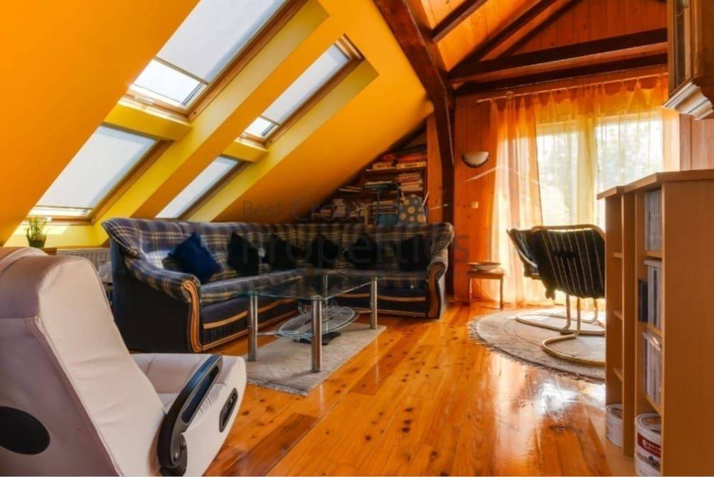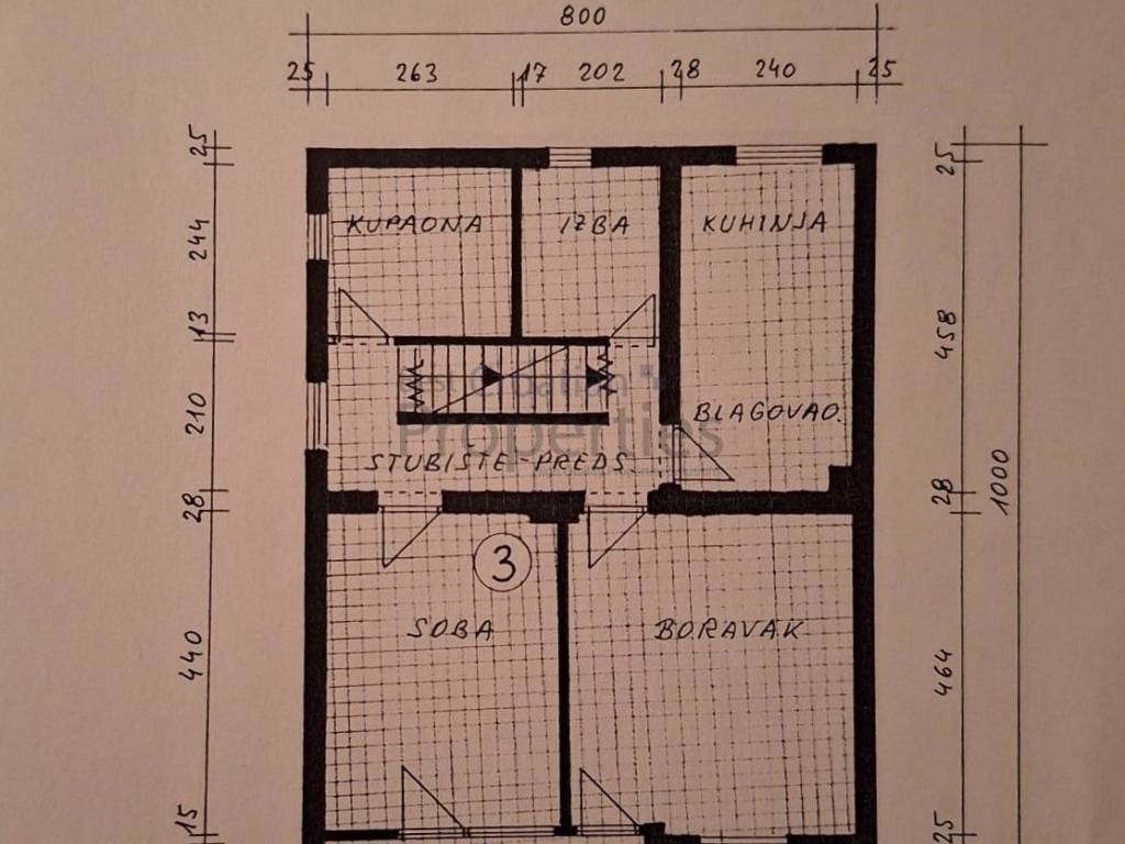Ukupna podna površina stana iznosi 142,57m2 kojem pripada i potkrovlje kuće s terasom.Stan se sastoji od dnevnog boravka i spavaće sobe s izlazom na balkon, blagovaonice i kuhinje, kupaone s wc-om, stubištem, velikim dnevnim boravkom u potkrovlju, spavaćom sobom i krovnom terasom s prekrasnim pogledom na sljeme.