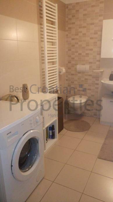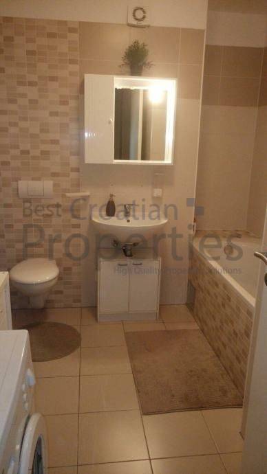 Stan se nalazi na mirnoj lokaciji u kvalitetnoj novogradnji. Sastoji se od kuhinje, dnevnog boravka, dvije spavaće sobe, kupaonice, hodnika i francuskog balkona.