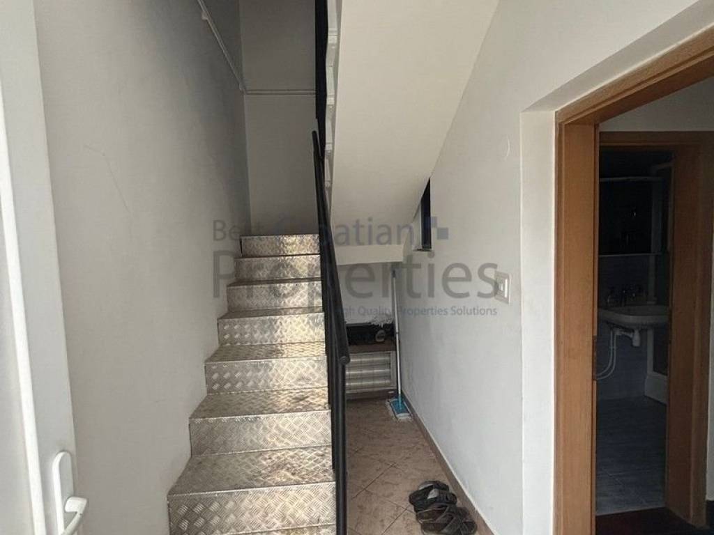 Unutarnje stepenice vode na kat, gdje se nalaze tri sobe (dvije spavaće i dnevna), hodnik, mala kuhinja, kupaona i velika terasa od 30m2.