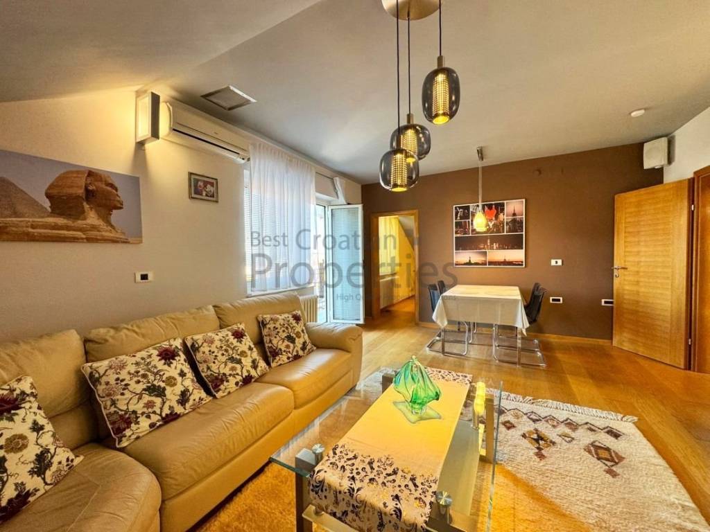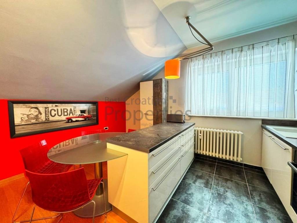 Iznajmljuje se simpatičan, moderno uređen dvosobni stan, veličine 63m2 u potkrovlju kuće, u mirnoj ulici Topolovečki priključak.