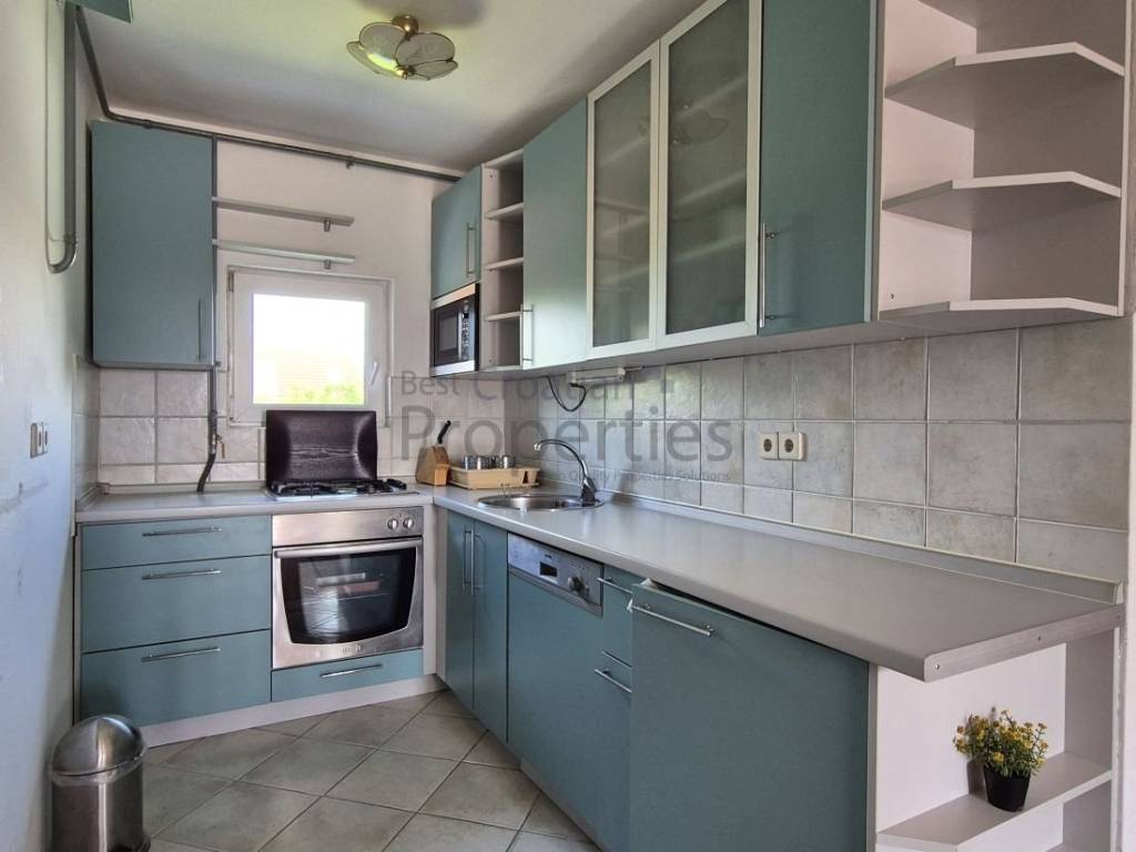 Stan se sastoji od prostranog dnevnog boravka s izlazom na lođu, dvije spavaće sobe, kuhinje i kupaonice. Stanu pripada i etažirani dio vrta veličine 160,94 na kojem se nalazi manja vrtina kućica (spremište). Parkiranje je moguće unutar ograđenog dvorišta, na asfaltnom prilazu koji pripada svim stanarima na služnost.