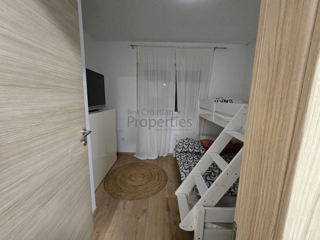 Stan se nalazi na izvrsnoj lokaciji, samo 1 km udaljen od mora i centra grada, u mirnoj zoni koja pruža savršenu ravnotežu između privatnosti i dostupnosti svih važnih sadržaja trgovine, škole, javni prijevoz, restorani i plaže su na nekoliko minuta hoda.