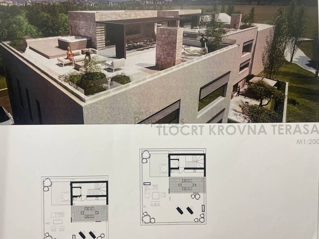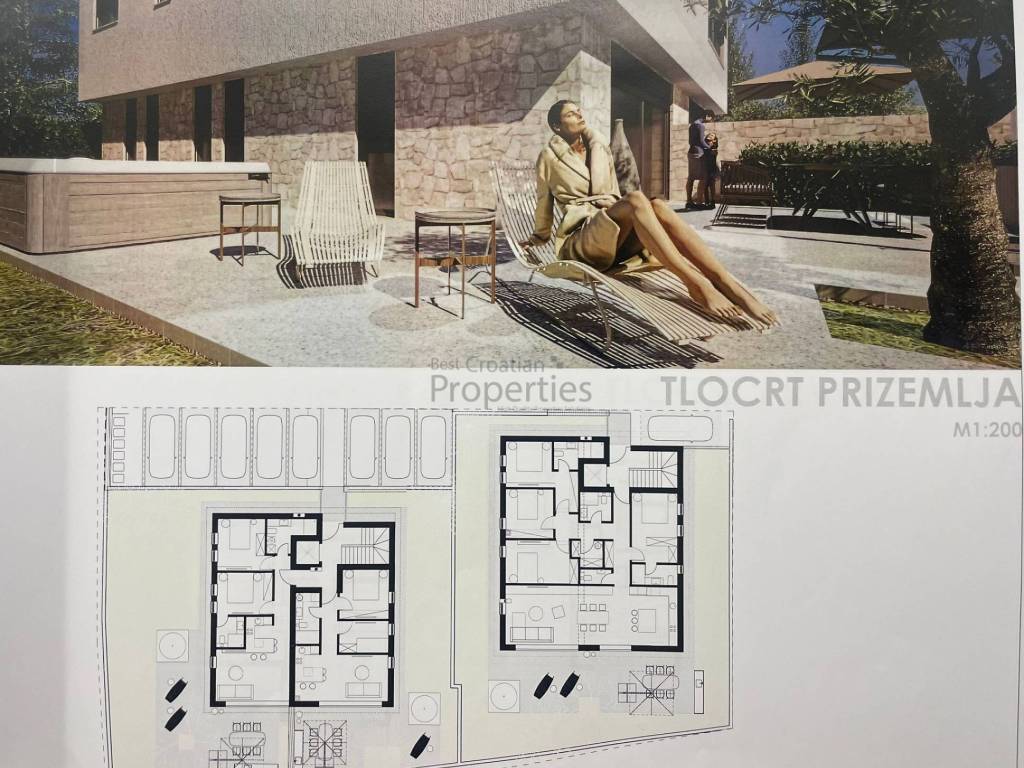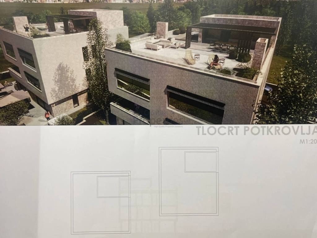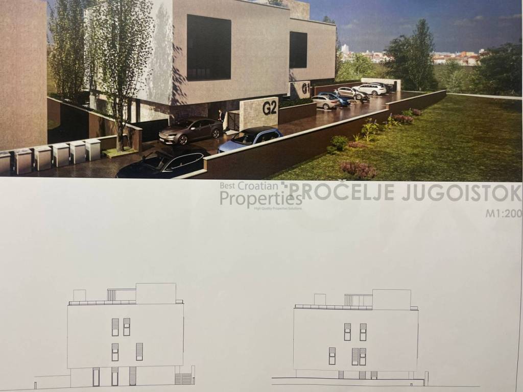 Ukupna kvadratura prodajnih kvadrata iznosi 1200 m2, od cega G1 vila ima 4 stana i ukupno 575m2 prodajnih kvadrata a G2 također 4 stana i ukupno 627m2.
