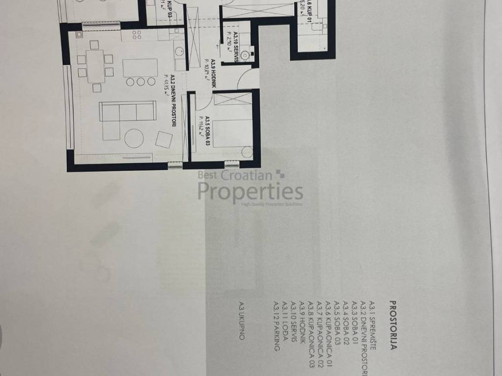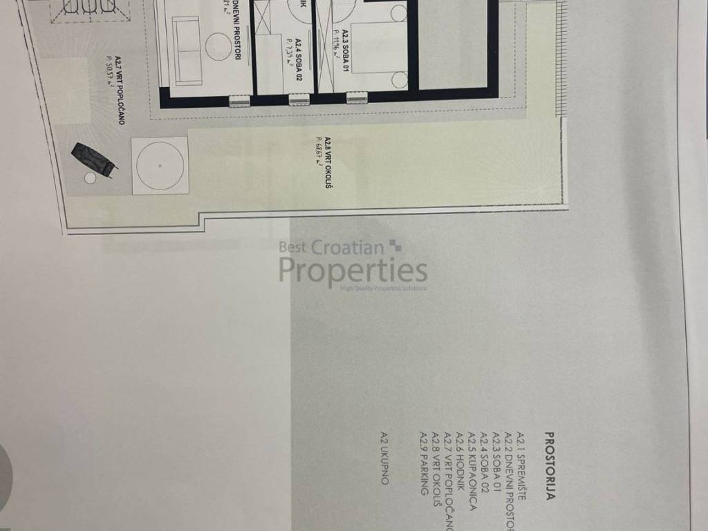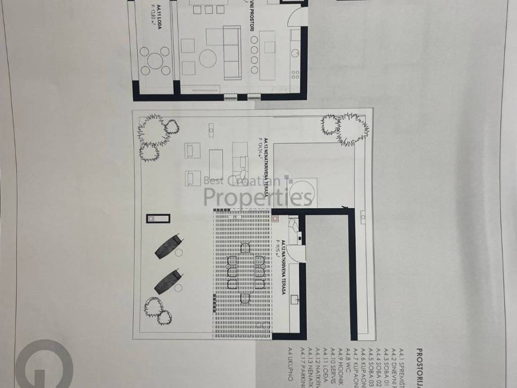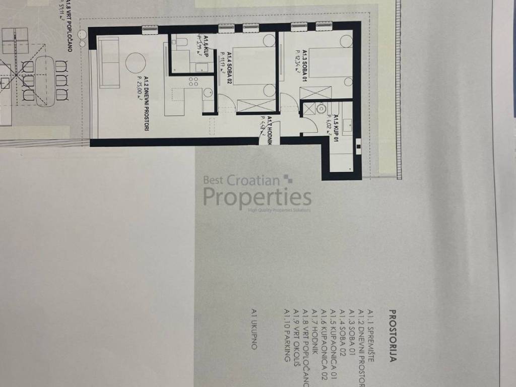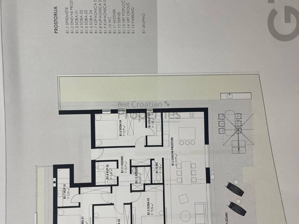 Ukupna kvadratura prodajnih kvadrata iznosi 1200 m2, od cega G1 vila ima 4 stana i ukupno 575m2 prodajnih kvadrata a G2 također 4 stana i ukupno 627m2.