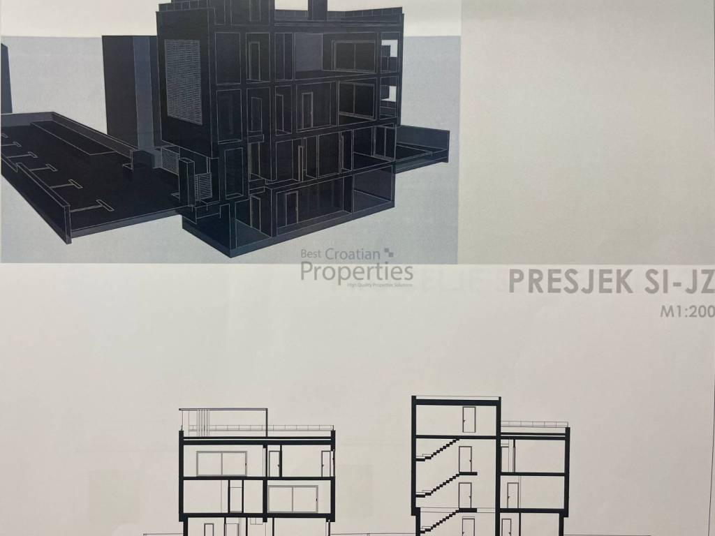 Prodaje se teren od 1582m2 sa građevinskom dozvolom i projektom za dvije vila ( 8 stanova ukupno ) na mirnoj lokaciji na području Kožina udaljenoj svega 100m od mora te 7km od stare jezgre Zadra.