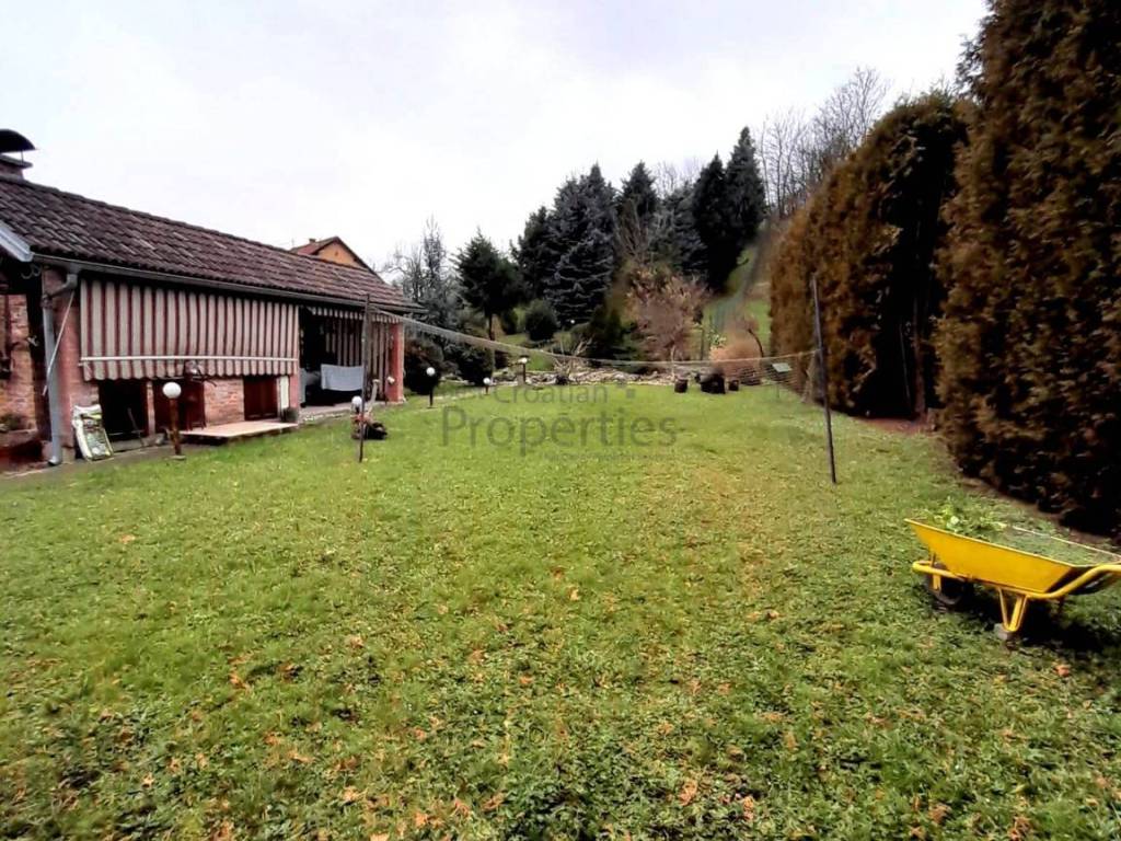Kuća nije do kraja završena (nedostaje fasada, te uređenje unutarnjih stepenica i terasa) te kupac može nedovršene dijelove oblikovati po svom ukusu.Uz cestu, a ukopana u teren kao samostalna građevina se nalazi garaža za dva automobila od 37 m2, s automatskim rolo vratima. Kraj garaže je put koji vodi do kuće a tamo su još dodatna parkirna mjesta.U mirnom i zaklonjenom vrtu je velika sjenica (28 m2) s vanjskim roštiljem i ljetnjom kuhinjom.Dijelovi kuće koji su izvan gabarita građevne dozvole su kasnije legalizirani tako da je moguća kupnja kreditom banke.Pogodno za veću obitelj koja ima naviku boraviti u prirodi.Lokacija je izvrsna jer u krugu 300 metara ima sve sadržaje potrebne urbanom čovjeku.