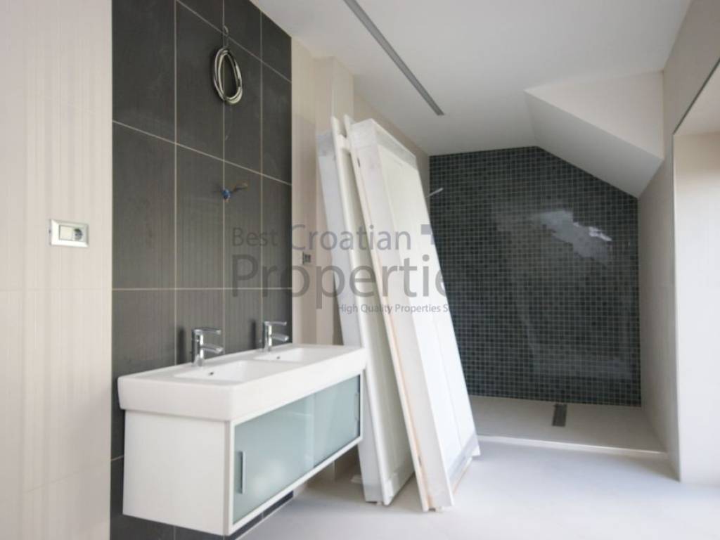 Pri građenju nekretnine pazilo se na svaki detalj i korišteni su vrhunski materijali kao što je vanjska stolarija od ariš-aluminij, kamena štukatura oko prozora i vrata, grijani krov itd.