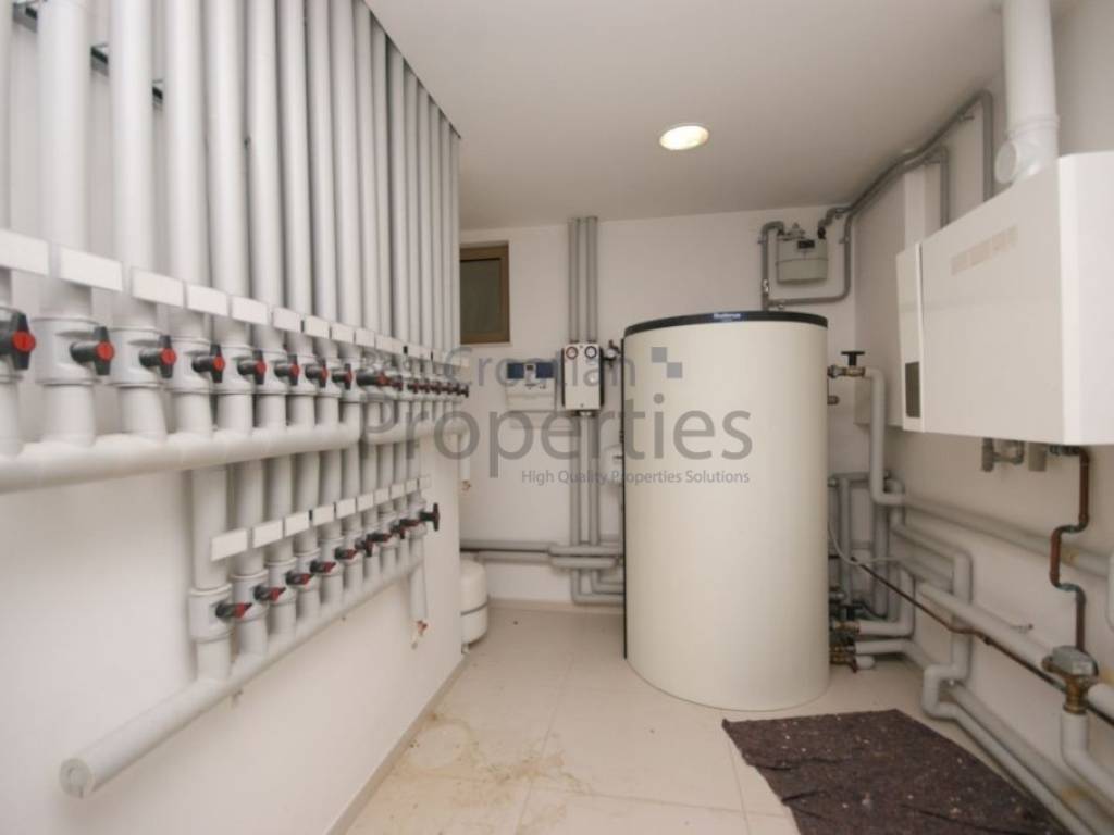 U -1 etaži se nalaze dvije velike garaže, vešeraj, server room, najsuvremenija kotlovnica i predviđeni prostor za teretanu, saunu i prateći sadržaj.