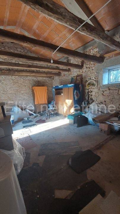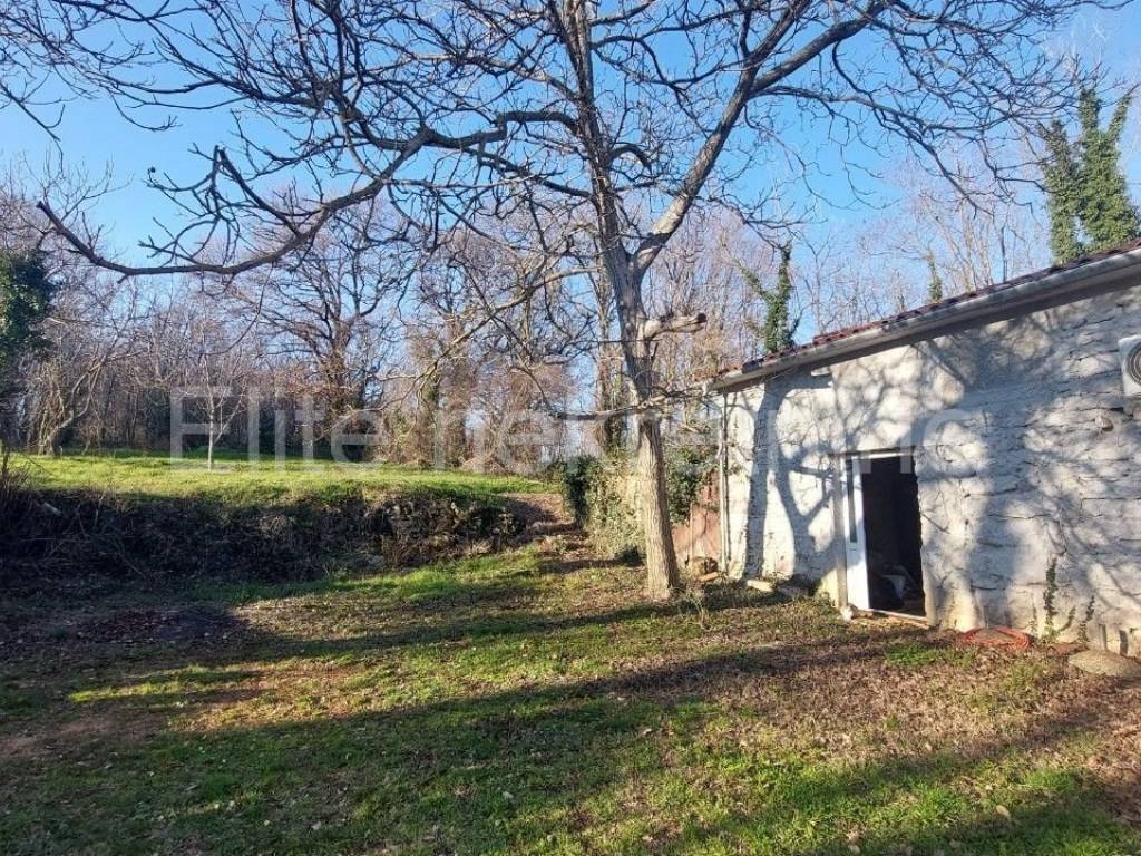 Just one kilometer from the historic town of Barban, located in the picturesque landscape of southeastern Istria, a charming stone terraced house with a 273 m garden and additional 2,600 m of building land is for sale.