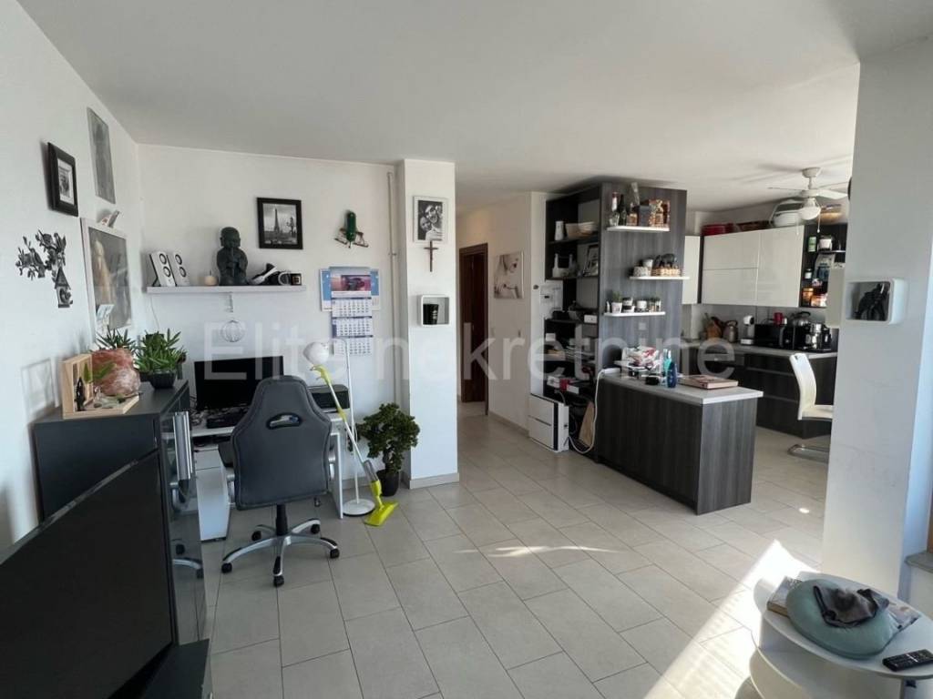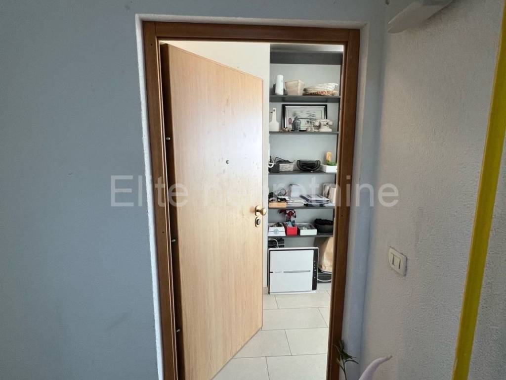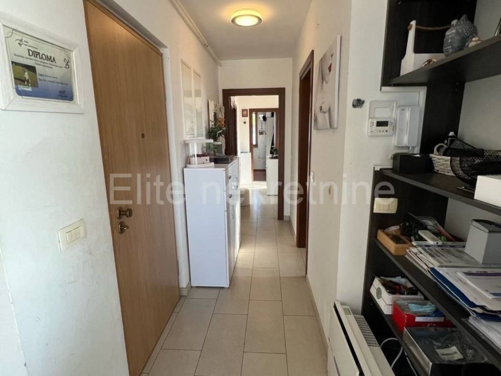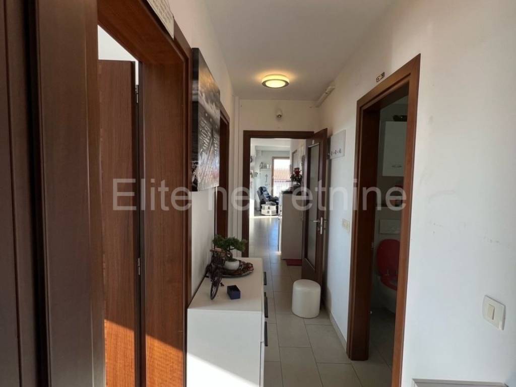 It consists of a hallway, 2 bathrooms, 3 bedrooms, a kitchen with a dining room and a living room (open space) with access to a balcony, from where there is a partial view of the sea, and a storage room of 3.30 m2.The apartment also has a garage of 18.10 m2, and a parking space within the building.From the garage you can enter the apartment directly by elevator, so it is also adapted for people with disabilities.It has an excellent layout, bright and functional.An extremely sought-after location, close to all important amenities necessary for life.The apartment is ready to move in immediately, and does not require any additional investment.An ideal property for a young family.Proper documentation!The agency commission is charged in accordance with the General Terms and Conditions available on the website www.elite-nekretnine.hr/opci-uvjeti-poslovanja.