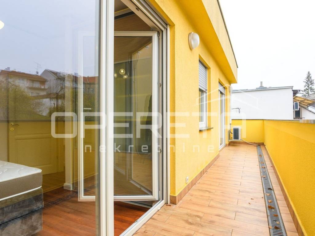 Rent of the aparment, Vinogradska, Jelenovački potok, penthouse, a beautiful twobedroom apartment in a villa with a large terrace. Sam indoor living space has 100m2 + terrace of 52m2. Look at the forest park Jelenovac, peace and greenery. The apartment also has a garage and parking space. Villa is equipped with elevator and sports cabinet with unlimited possibility to use audio and video surveillance and ample parking. Located in a green zone, three tram stops from the square Ban Josip Jelacic and seven minutes walk to the SQUARE DR. Franjo Tudjman.