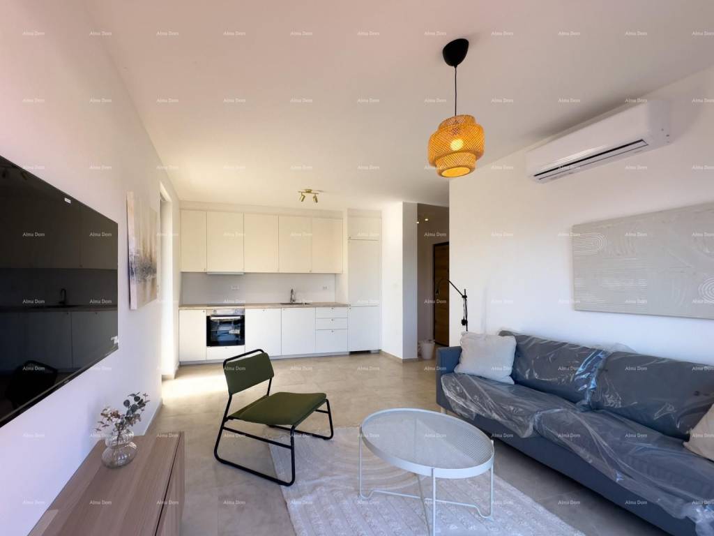 Mukalba, beautiful apartment in a new building, 500 m from the sea!We are selling an apartment with a garden and a swimming pool in a great location, Mukalba, Medulin! Fully furnished apartment. The apartment is located on the ground floor of a 2-story building. It consists of a hallway, 2 bedrooms, 1 bathroom, living room with kitchen, pool and garden 94.28 m2. Each room has an exit to the garden. The living room and bedrooms are air-conditioned.The apartment has 1 parking space and the parking lot will have an electricity connection, i.e. for charging electric vehicles.The net area of the apartment is 54.34m2Garden 94.28 m2 (94.28 x 0.10 = 9.43)PM E2 3.12m2TOTAL NET AREA 66.89For further information, please contact:Azra +385 91 611 5706+385 98 420 885azra@almadominvest.com