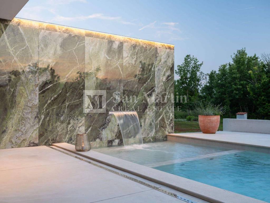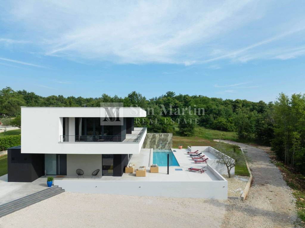 In the surroundings of the picturesque town of Grožnjan, this stunning designer villa is for sale! Located in a small settlement on the edge of the construction zone, the property offers complete peace and privacy. With its large plot and serene setting, this is a place where you can truly unwind and enjoy life to the fullest.