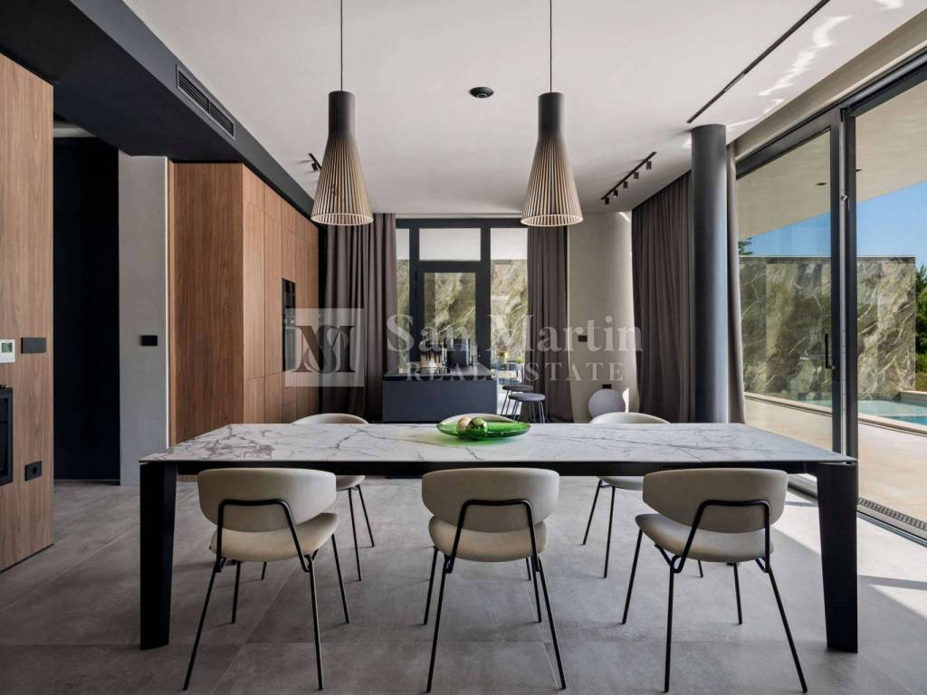 The property is heated and cooled by high-quality air conditioning units, with an electric fireplace in the living room and underfloor heating in the bathrooms. The villa is equipped with video surveillance, and the first phase of the alarm system has been installed.