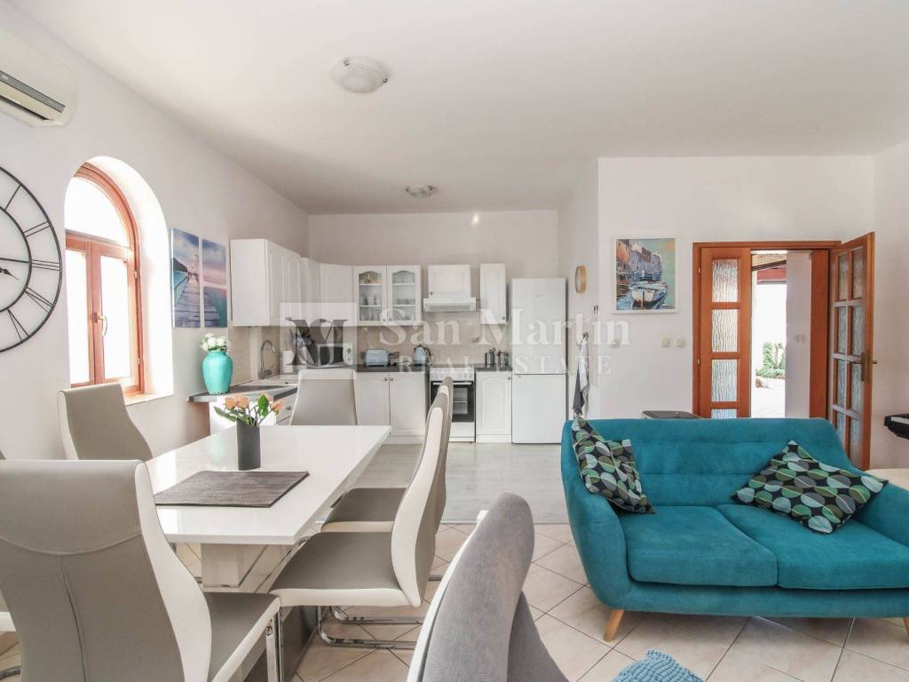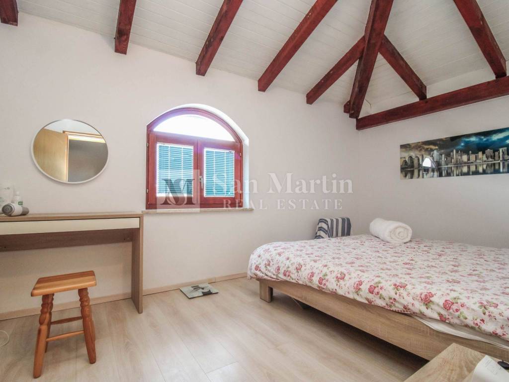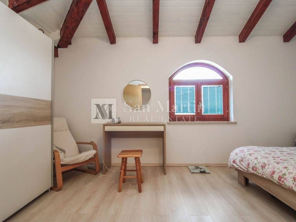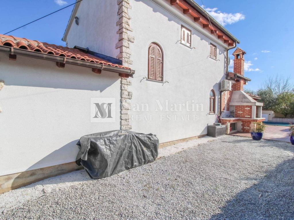 Near the town of Poreč, a very nice traditional house with a total area of 150 m2 is for sale. The house is located on a landscaped plot where there is also a swimming pool with a paved sunbathing area and a built-in barbecue.