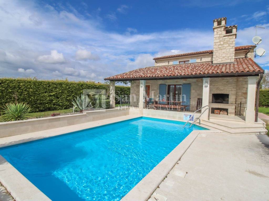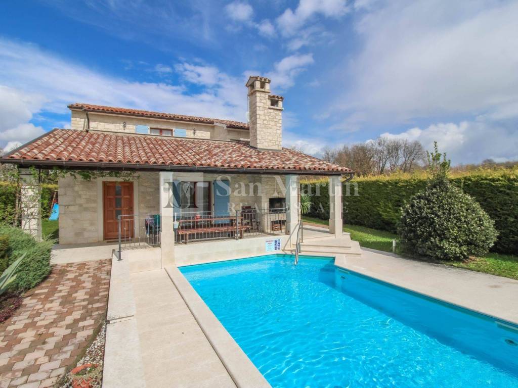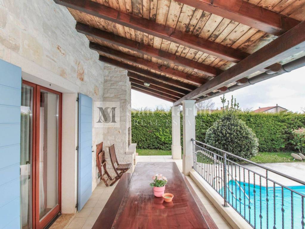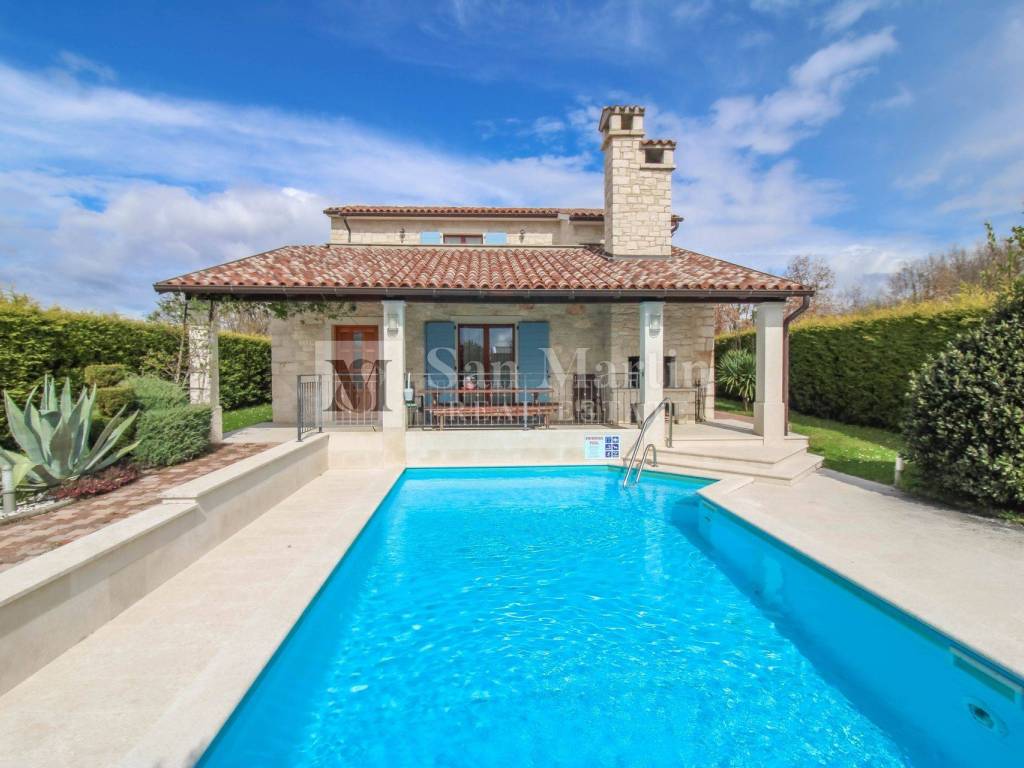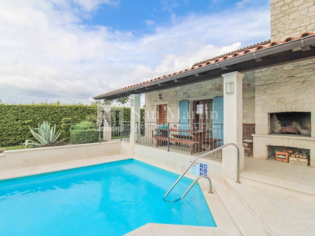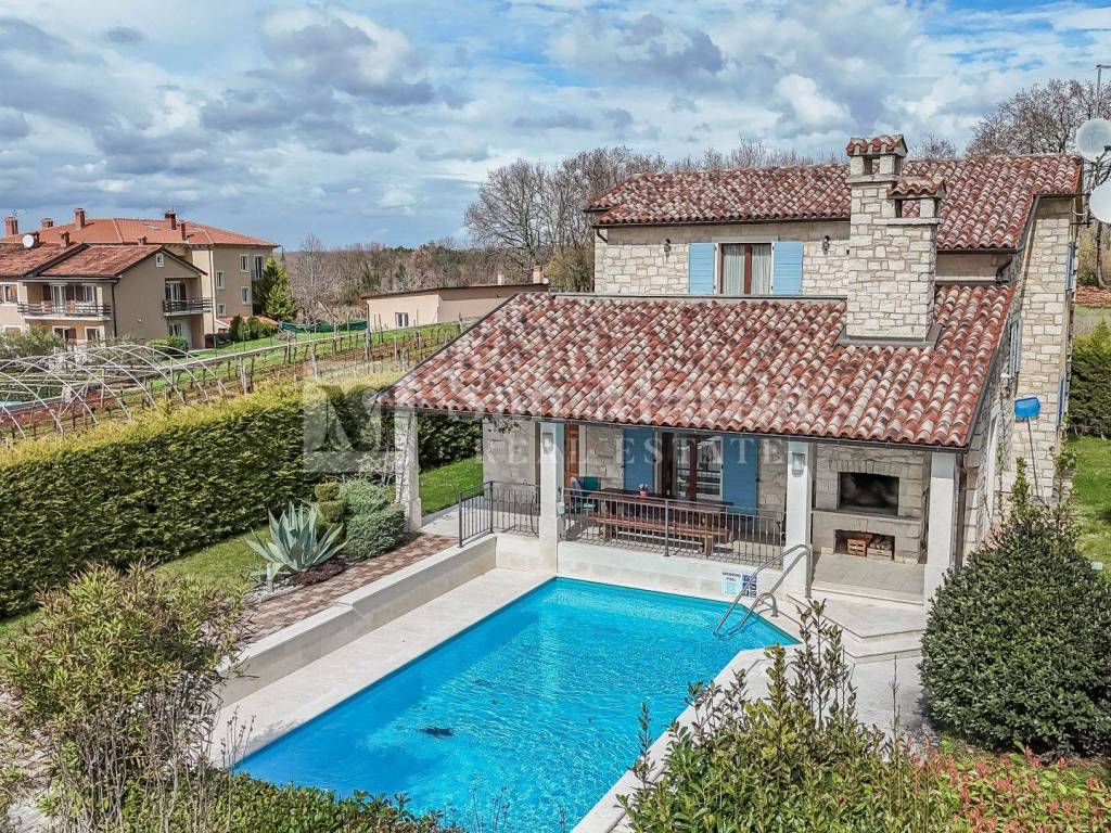 Poreč, surroundings - stone house with swimming pool surrounded by greenery