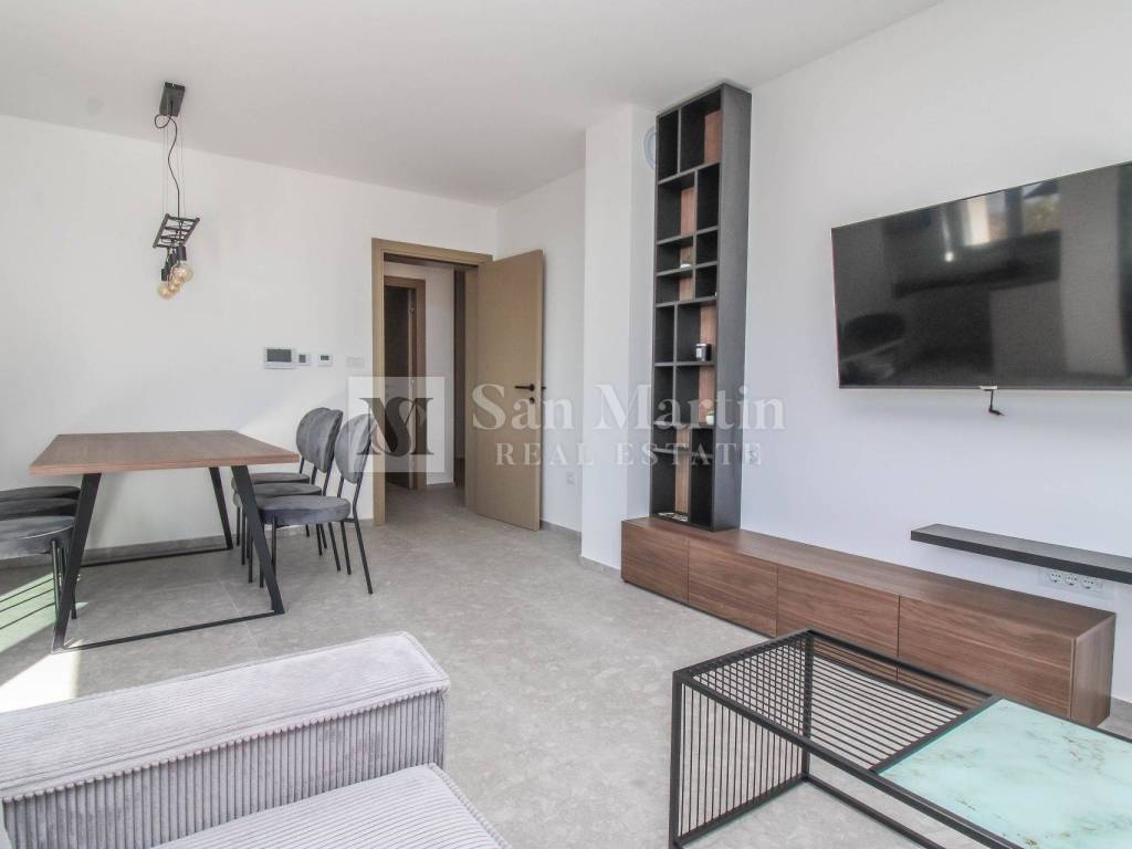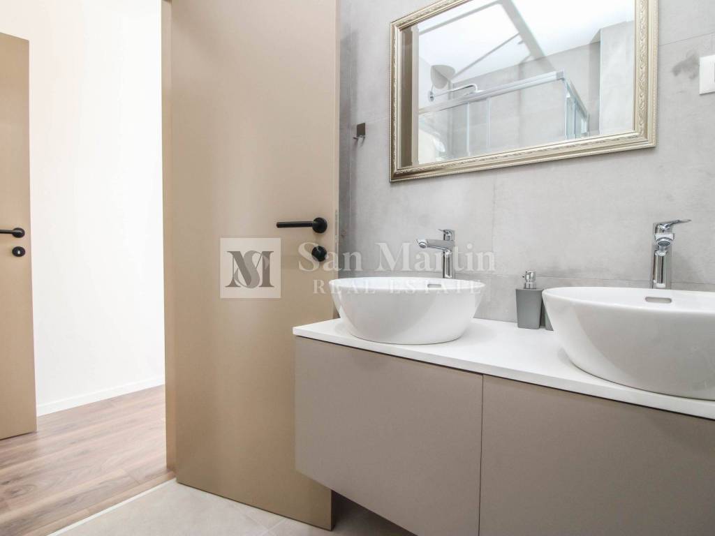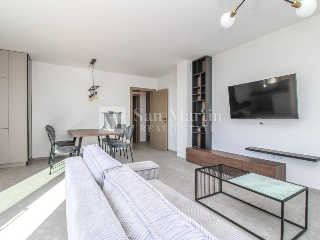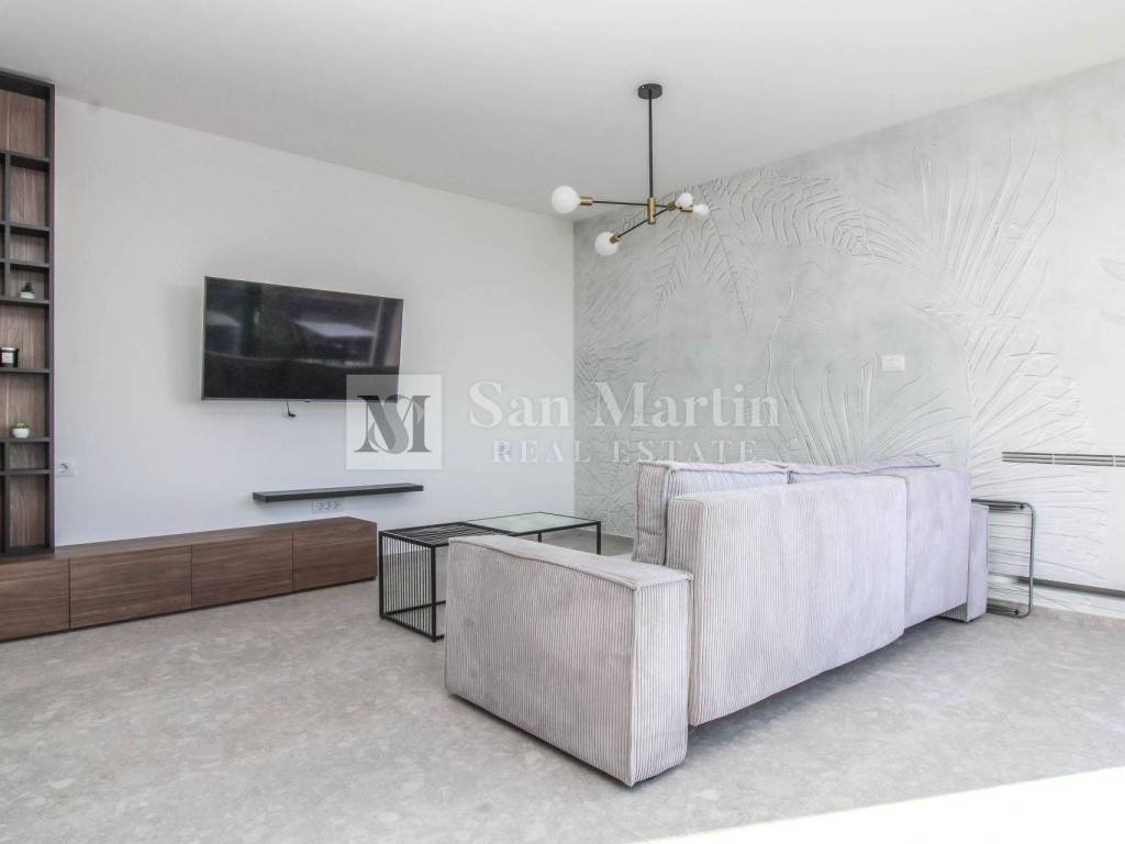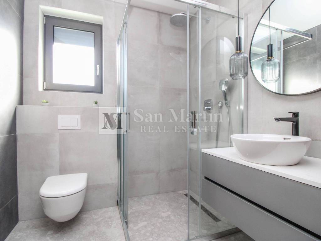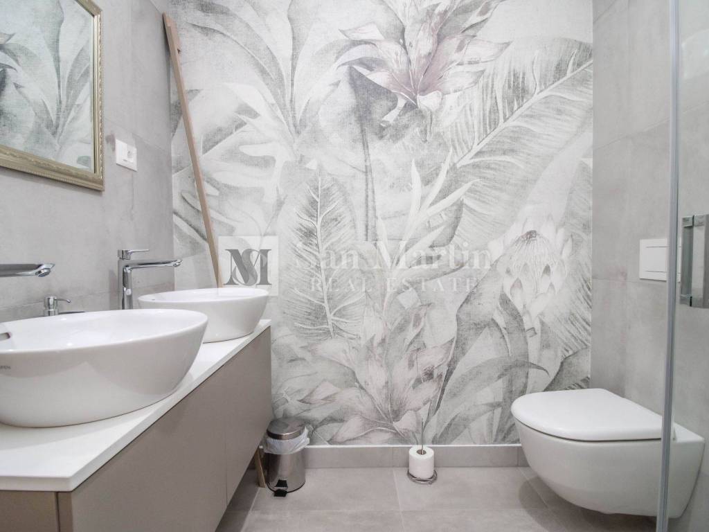 Near the city of Poreč and the sea, there is a modern apartment for sale in a new building with a beautiful view of the sea and rich contents.