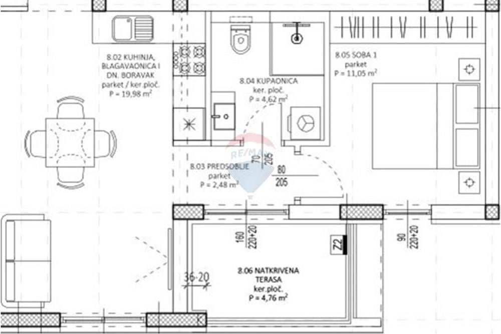 For sale is an apartment marked S8, located on the second floor of a residential building facing south. The building is located on an elevated part from where there is a wonderful view of the sea and the entire city of Zadar.
