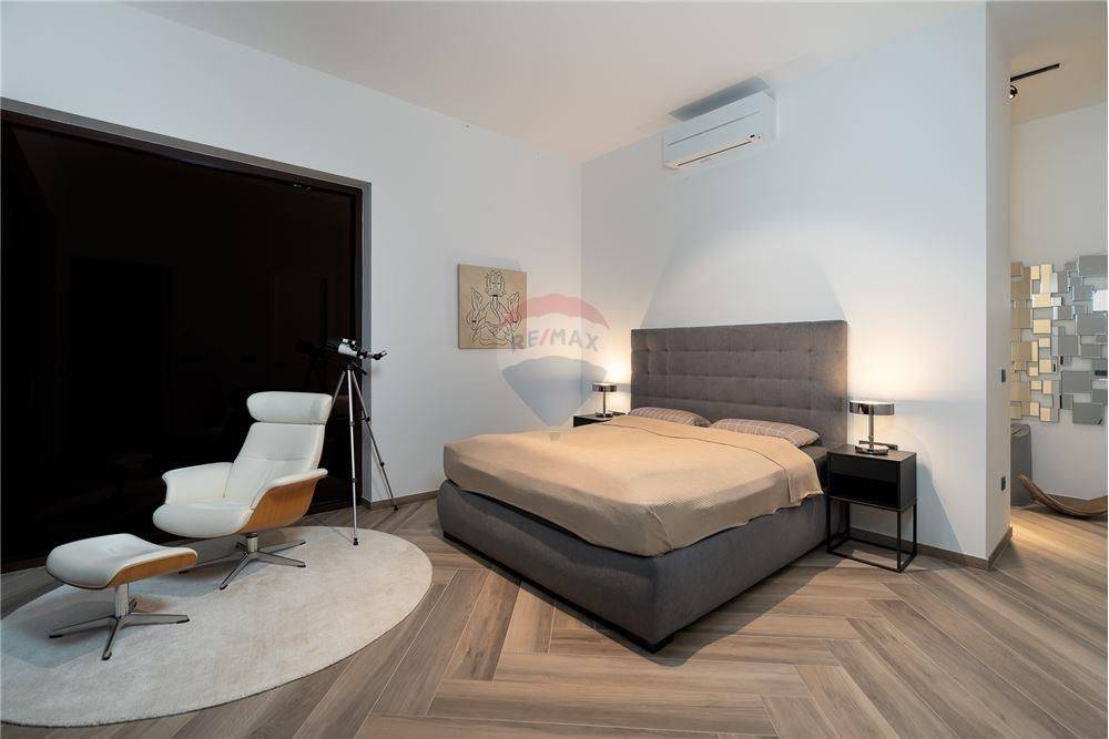 The house is equipped with a modern fireplace, underfloor heating, smart air conditioners (Mitsubishi Electronics), LAN/WLAN internet (SAT-TV/INET TV), luxurious Bernada beds, HIKVISION video intercom, HIKVISION security monitoring, smart locking of the main room door, fully equipped kitchen with excellent electrical appliances, LED lighting with timers and dimmers. High-quality glass railings were also installed on the staircase and balcony. Landscaped garden with automatic irrigation.