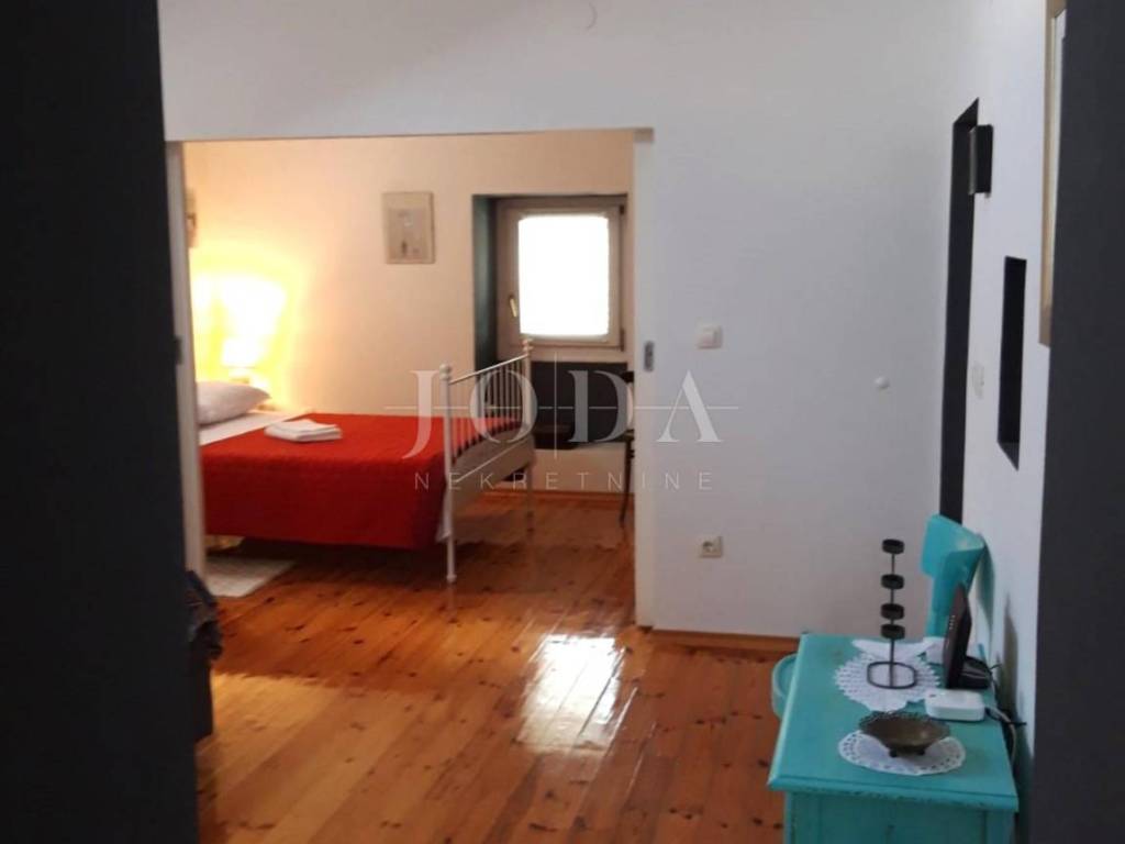 The house with an area of 100 m2 extends through the ground floor and first floor. On the ground floor there is a living room with a dining room and a kitchen and a large covered terrace connected to a landscaped garden. Internal stairs lead to the first floor where there are two bedrooms and a bathroom. During the renovation of the property, the original character and uniqueness of the stone house was preserved. There is a swimming pool of 35 m2 with a sunbathing area and an outdoor storage room in the landscaped garden. There is parking for several vehicles at the entrance of the yard. It is located in a quiet location, a few minutes' drive to the sea and all facilities.