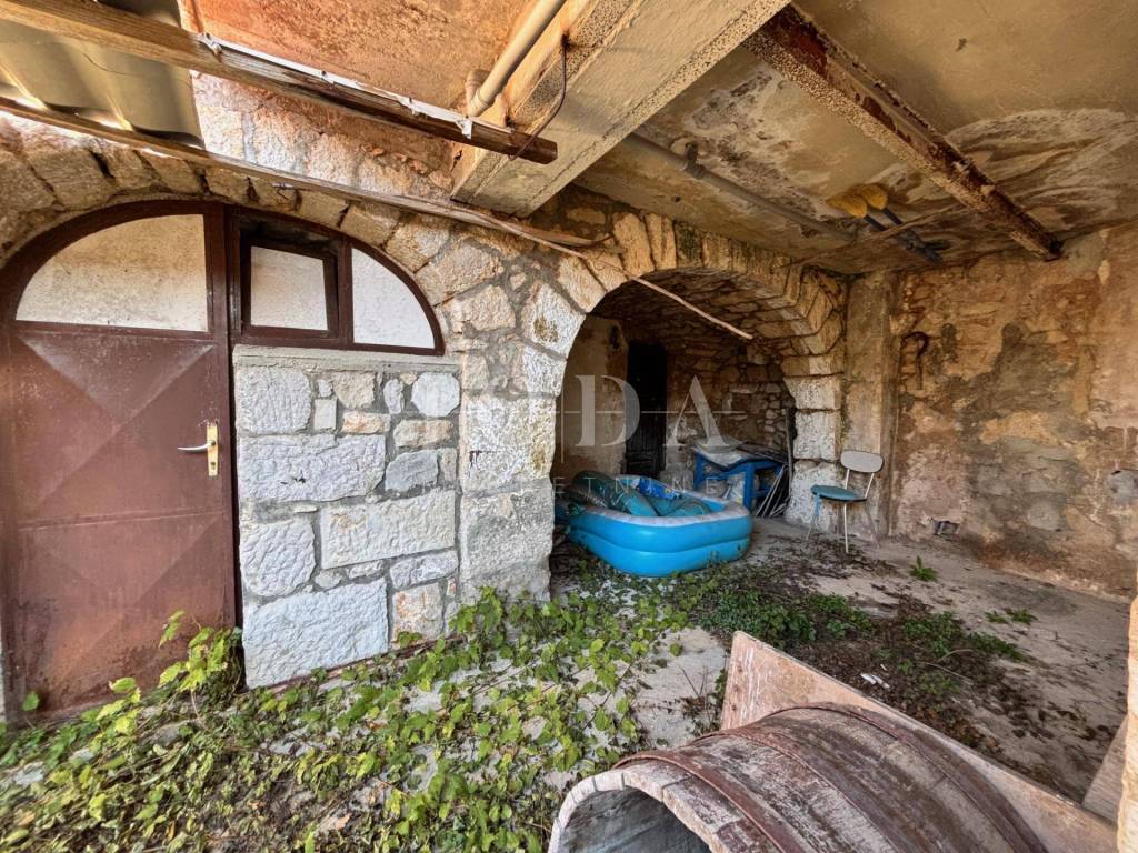 It consists of an entrance courtyard, a ground floor with three rooms, and an upper floor with four rooms. The house has access to water and electricity, and it is reachable via an asphalt road. It is located just 1,500 meters from the town center and 7 kilometers from Crikvenica.