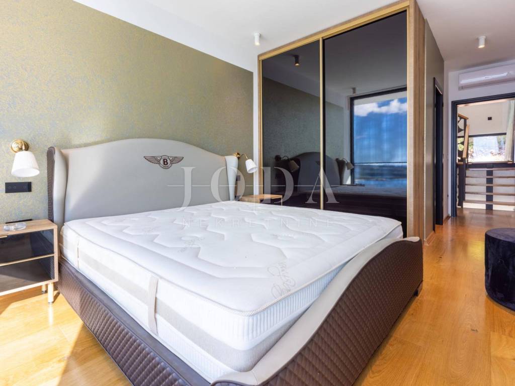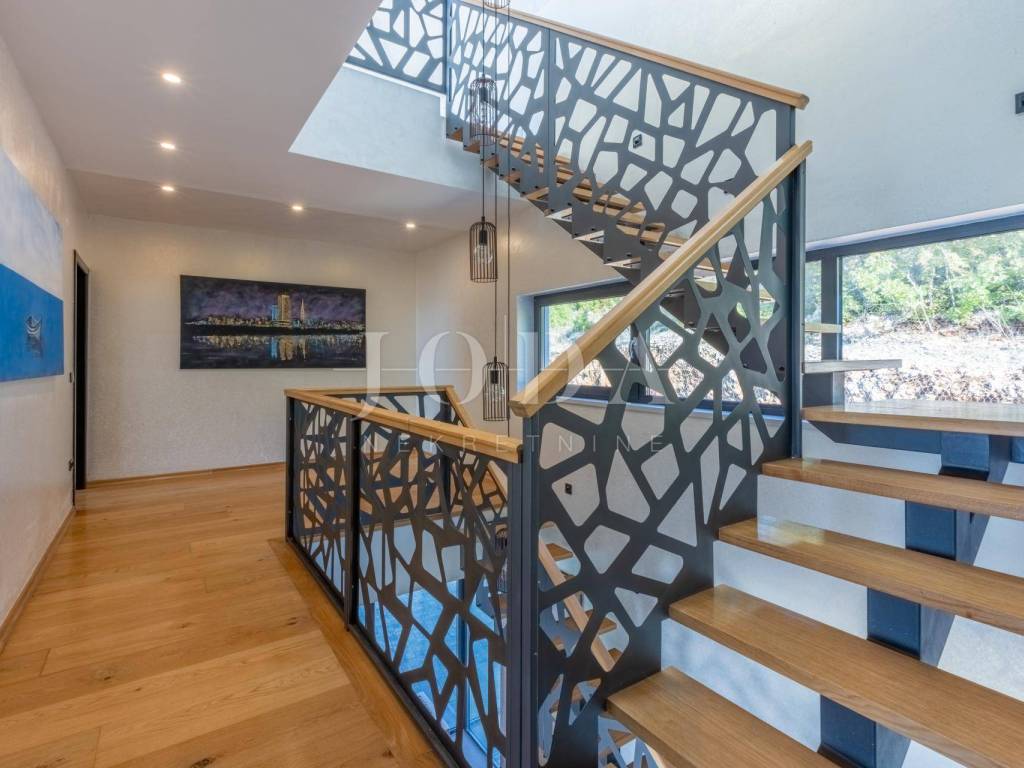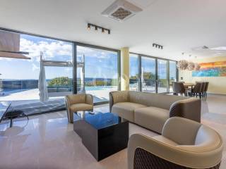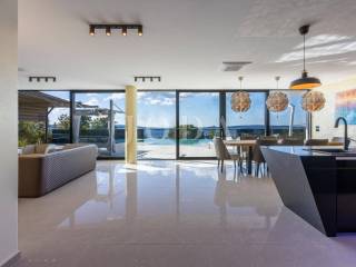The staircase leads to the first floor where there are three bedrooms, each with its own bathroom and balconies, while on the top floor there is a roof terrace with sun deck and jacuzzi.