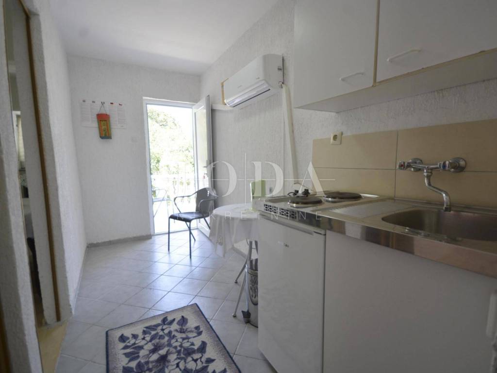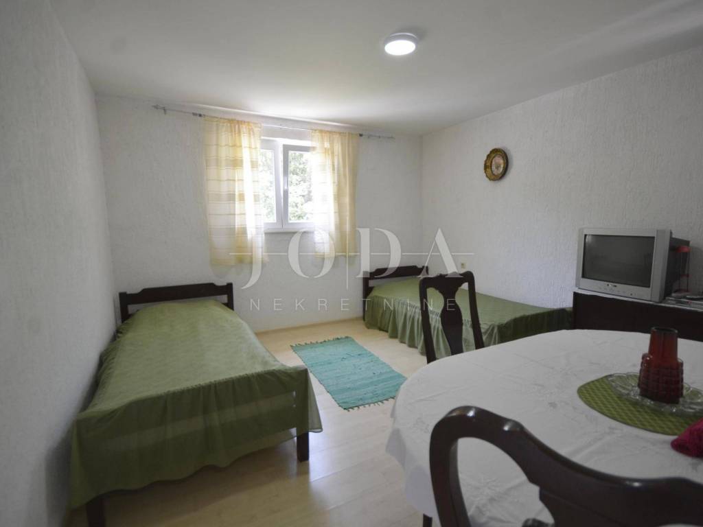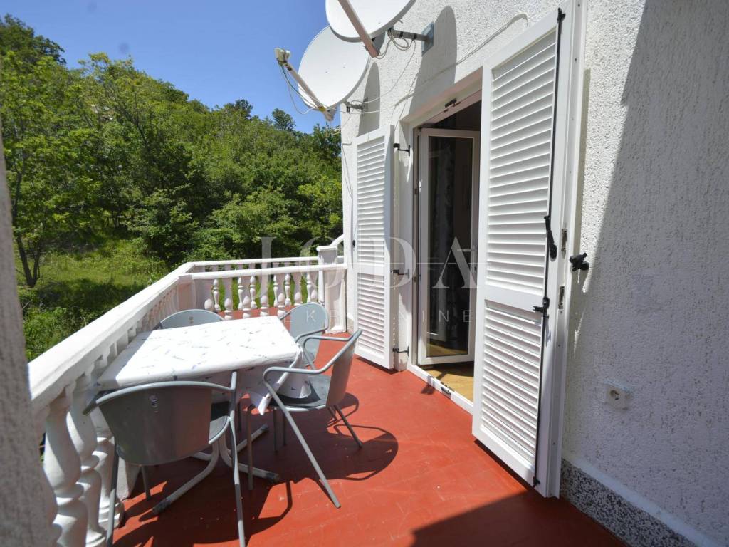 In a quiet location surrounded by greenery, a few minutes drive to Baška is a semi-detached house with five apartments. The house has a residential area of 288 sqm and extends over three floors. On the ground floor there is a spacious apartment of 100 sqm with living room, kitchen and dining room, three bedrooms and bathroom. The ground floor has access to the terrace where there is a lounge area and barbecue in the stone. The first and second floor have the same layout of the rooms, each floor consists of two apartments of 45 sqm. The apartments consist of a kitchen, two bedrooms, a bathroom and a balcony. The house is air-conditioned, neatly maintained and has a tavern as an additional space. The courtyard is cultivated with low and high Mediterranean plants and has a parking space for four vehicles. The house is categorized for rent, four apartments are rented and the future owner will take over the already established business!