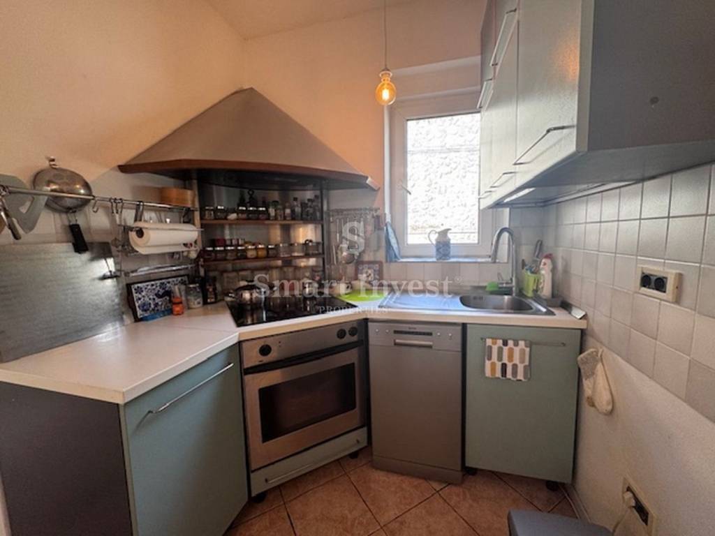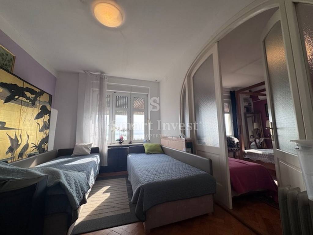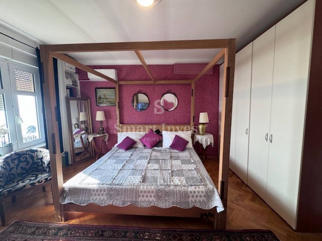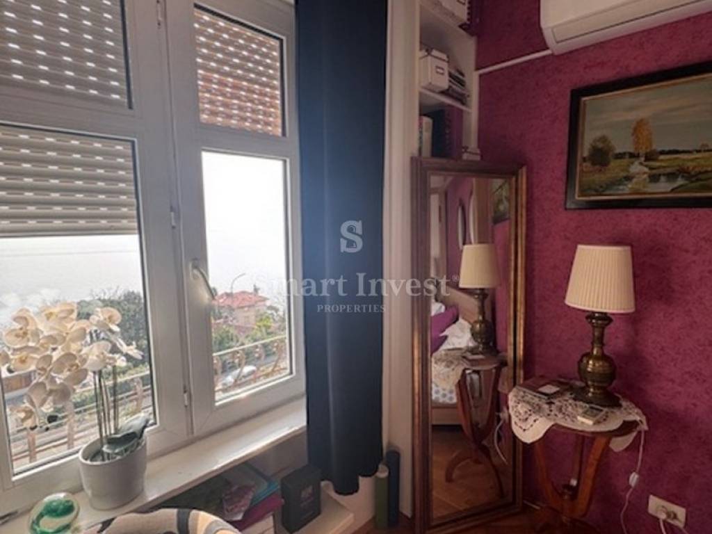 This spacious apartment occupies the entire first floor of a beautiful old villa and offers an incredible panoramic view of the entire Kvarner Bay. In addition, the apartment also has a parking space, which is a great advantage in the center of Opatija. Also, the apartment has an attic that offers the possibility of conversion into an additional room or gallery, providing you with additional living space.