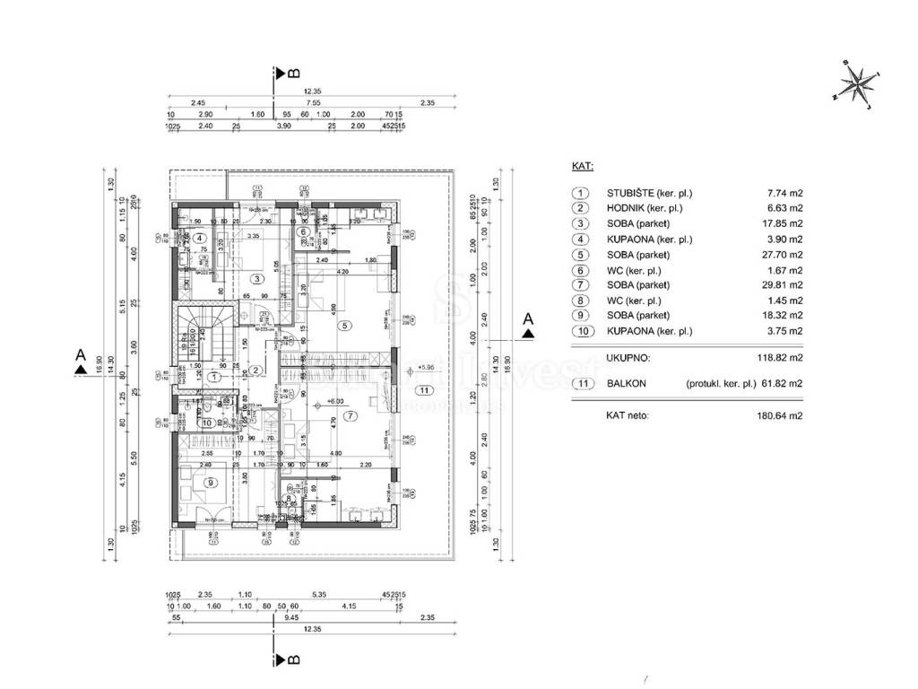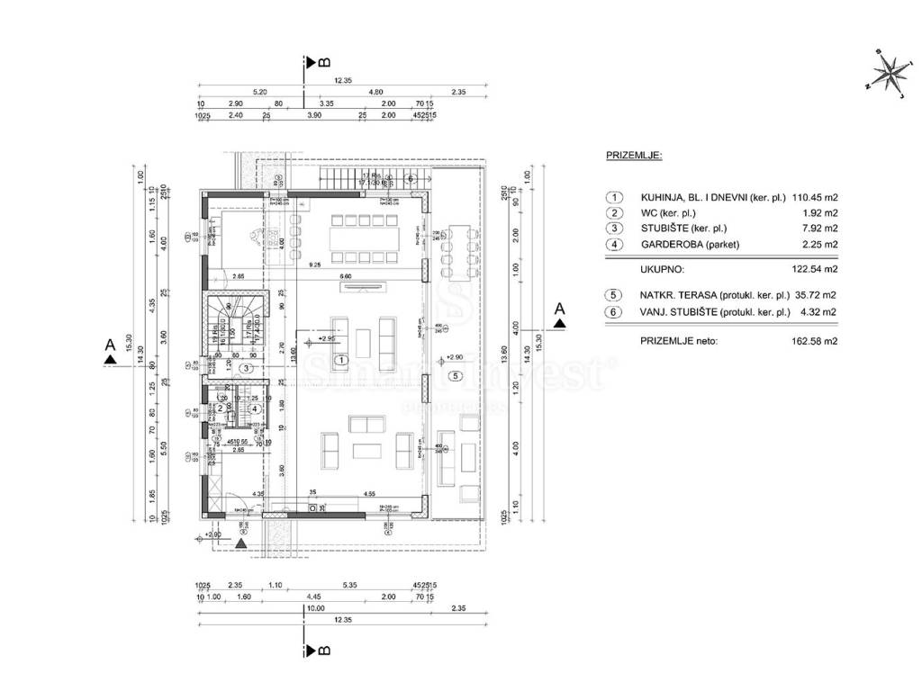 Građevinskom dozvolom je predviđena izgradnja vile neto površine 461,43 m2.