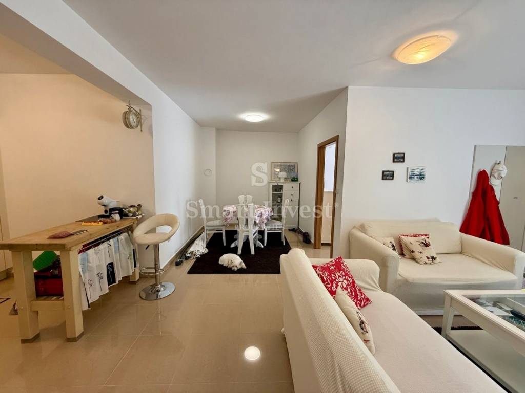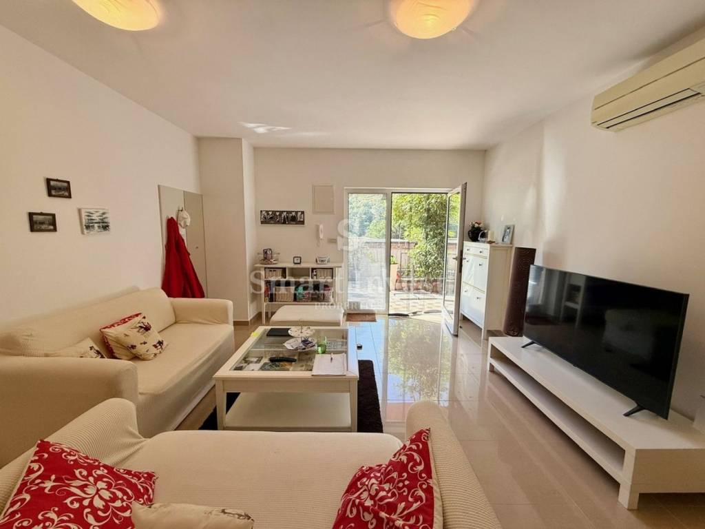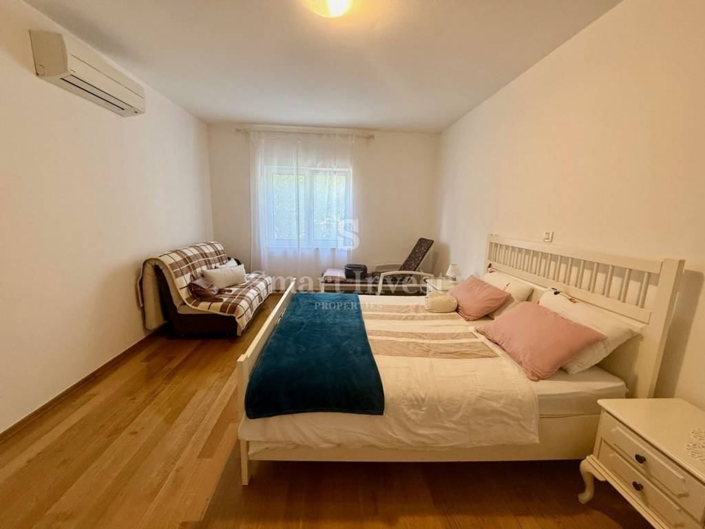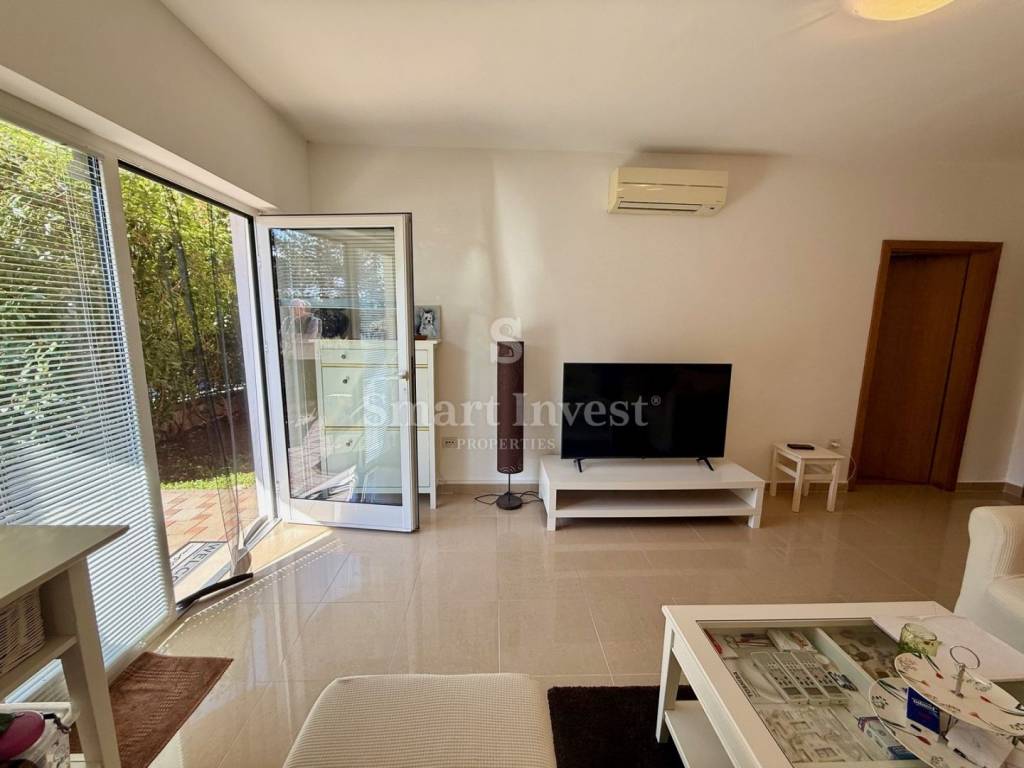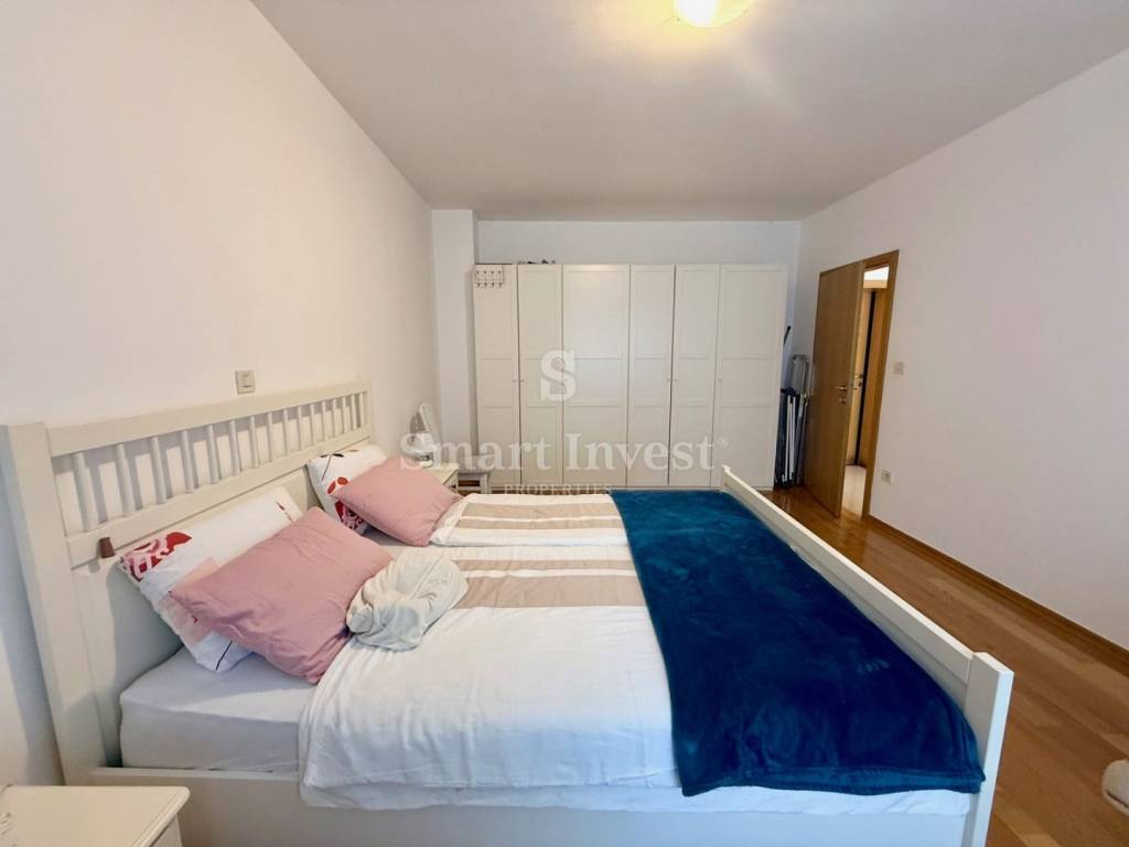 The special feature of this apartment is a separate entrance that provides additional privacy, although it is located within the residential building. The living room and both bedrooms have large sliding walls that let in plenty of sunlight, creating a pleasant and warm atmosphere throughout the day.