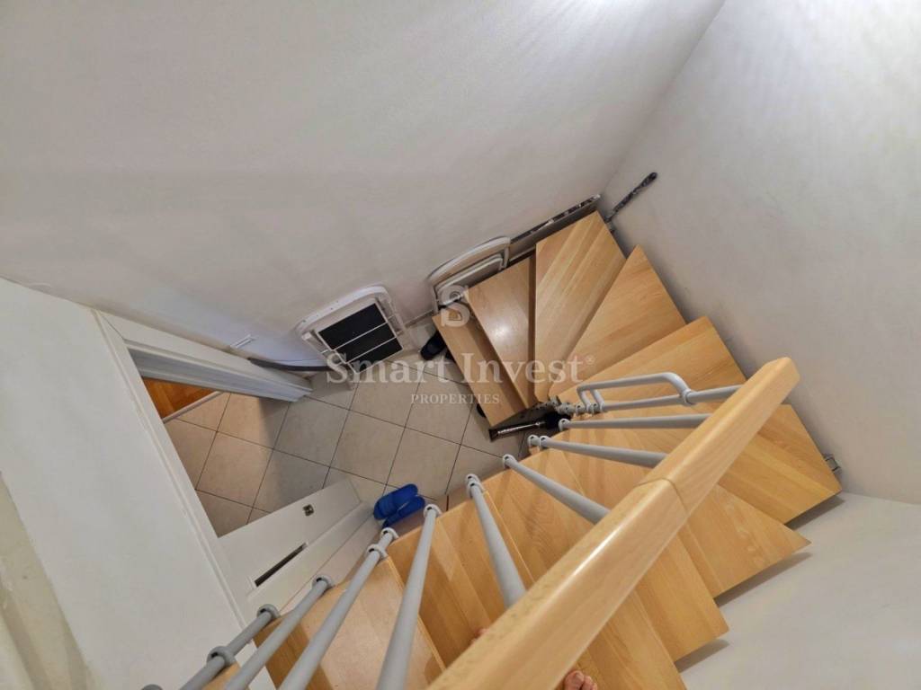 The apartment, with an area of 86 m, is on the 2nd floor and includes an additional storage room of 1.70 m on the ground floor.