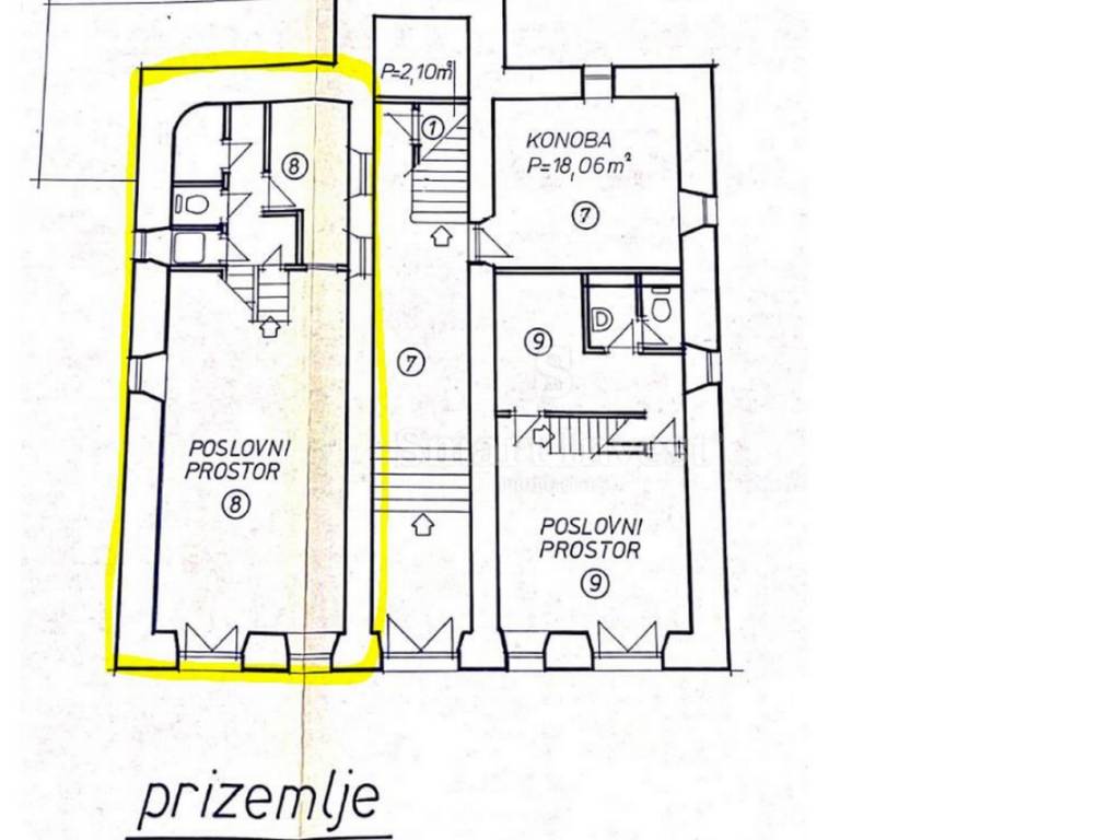 Poslovni prostor se sastoji od prizemlja površine 51,10 m2 te međukata površine 34,50 m2.