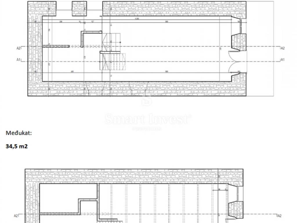 Vlasnik ima izrađen projekt za 2 apartmana (4+2) + studio apartman. Objekt ima 2 neovisna ulaza (s ulice i iz hodnika), te odvojene priključke struje, vode i kanalizacije za svaki ulaz.