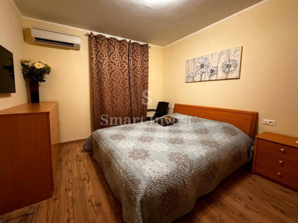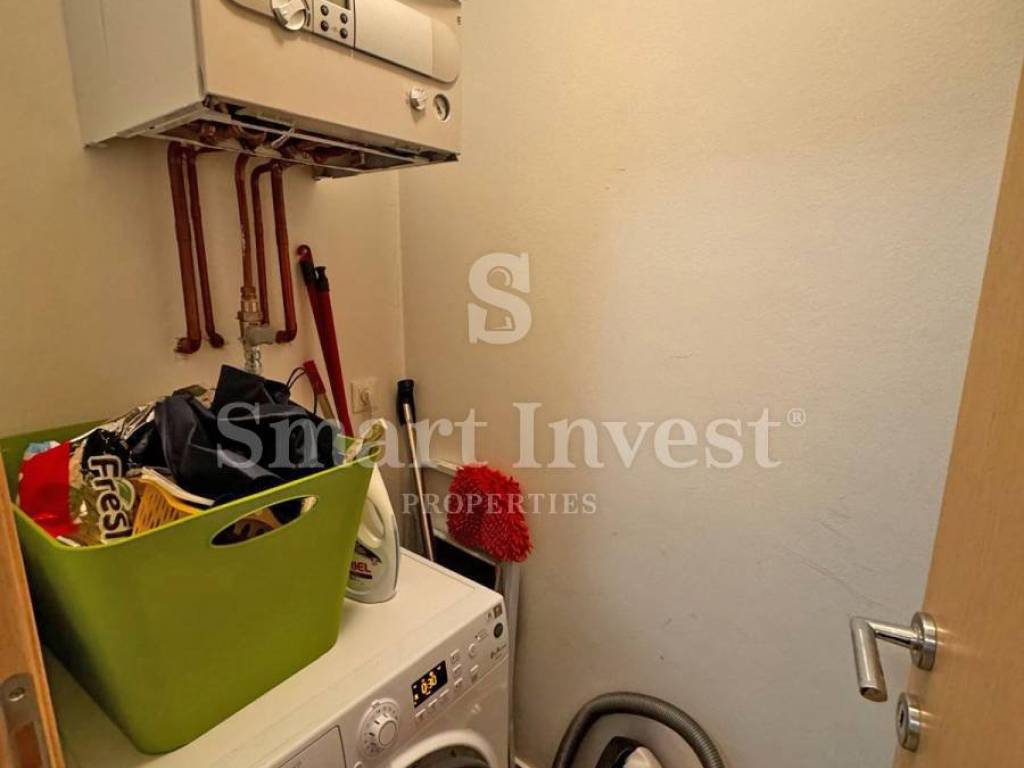 The apartment is equipped with air conditioning and gas central heating, fully furnished and is being sold as such. The apartment also has one parking space, and in the garden of the building there is a swimming pool with a sunbathing area available to the tenants of this and the neighboring building.