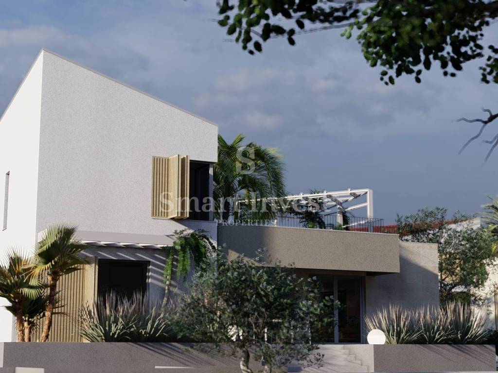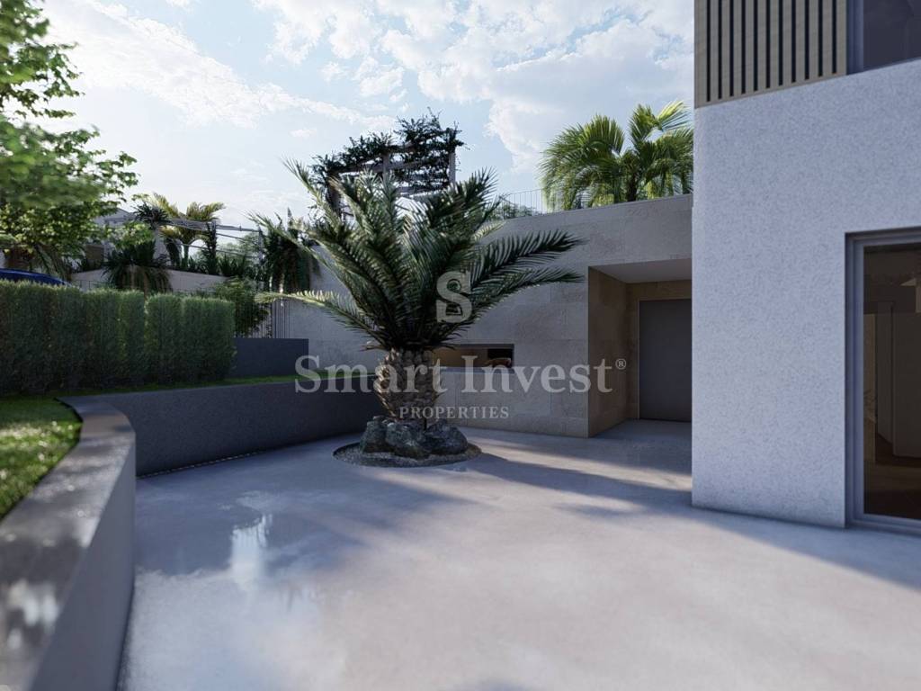 Villa V with a total gross area of 278.84 m is developed over three floors, including a functional basement, a spacious ground floor and a comfortable upper floor, all built on a plot of 739 m. The basement contains a perfectly functional space that includes a gym, bathroom, additional toilet and storage/engine room.