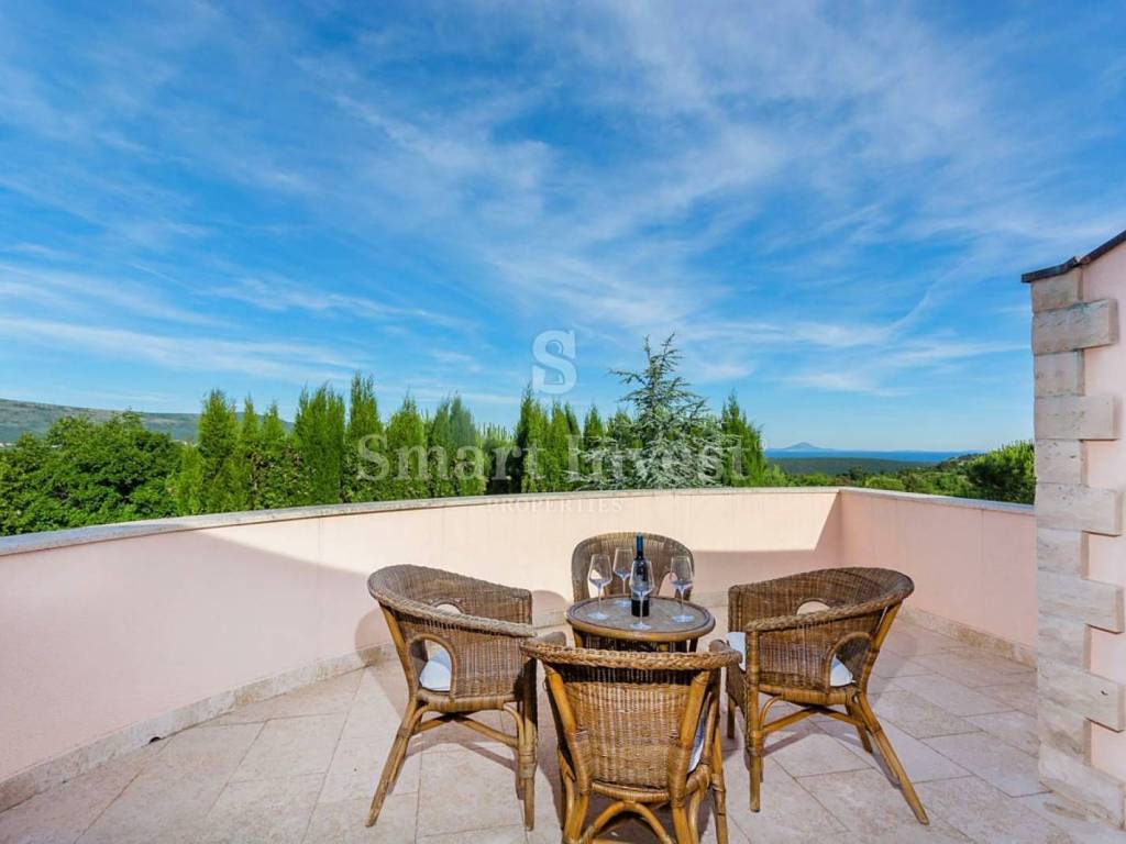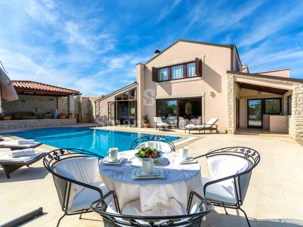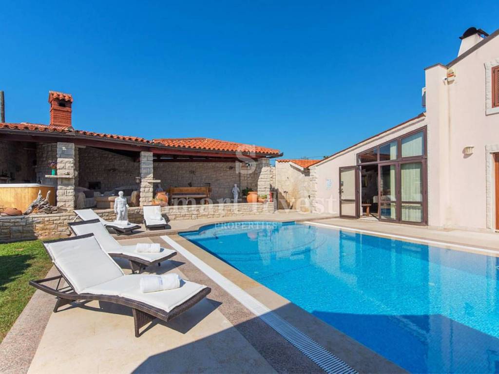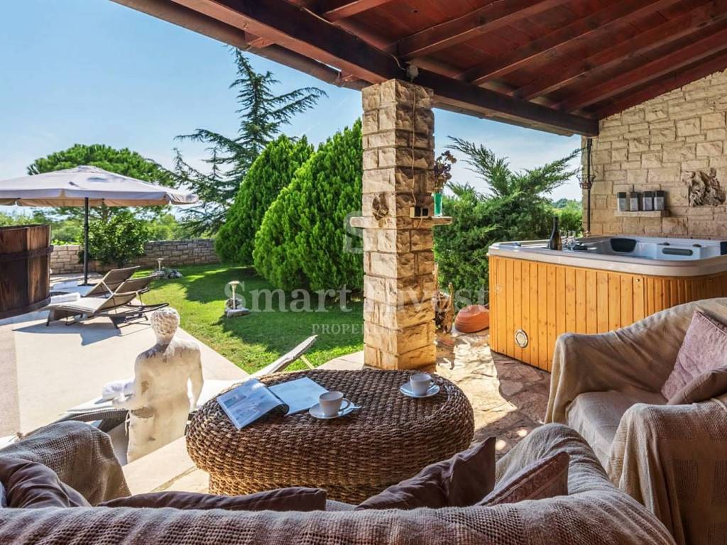 The villa is situated on an exceptional location, in a quiet and green environment, secluded, and the nearest beach is only 1.5 km away. There are shops, restaurants, and a winery nearby. The airport and the city of Pula can be reached in less than half an hour.