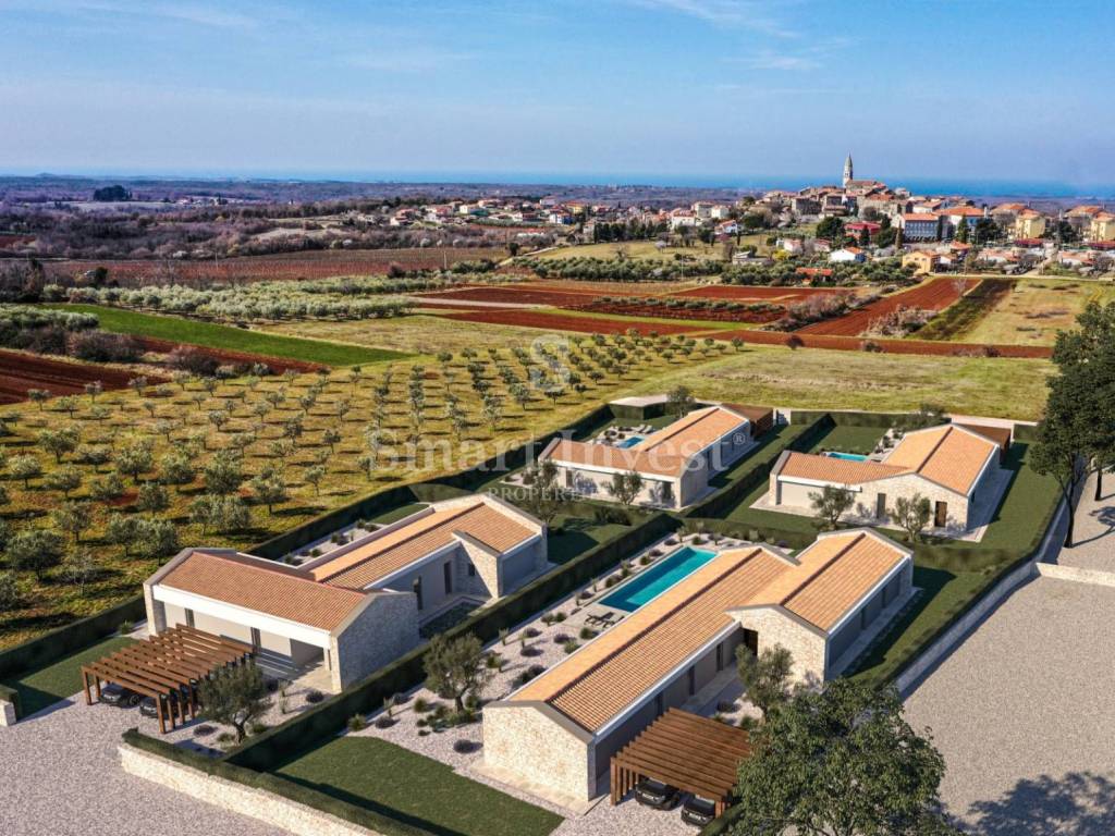ISTRIA - VIŠNJAN, For sale are 3-bedrooms villas with swimming pools and beautiful sea view on an attractive location in the picturesque town of Višnjan, only 12 km from Poreč.