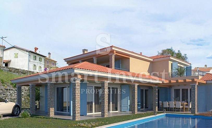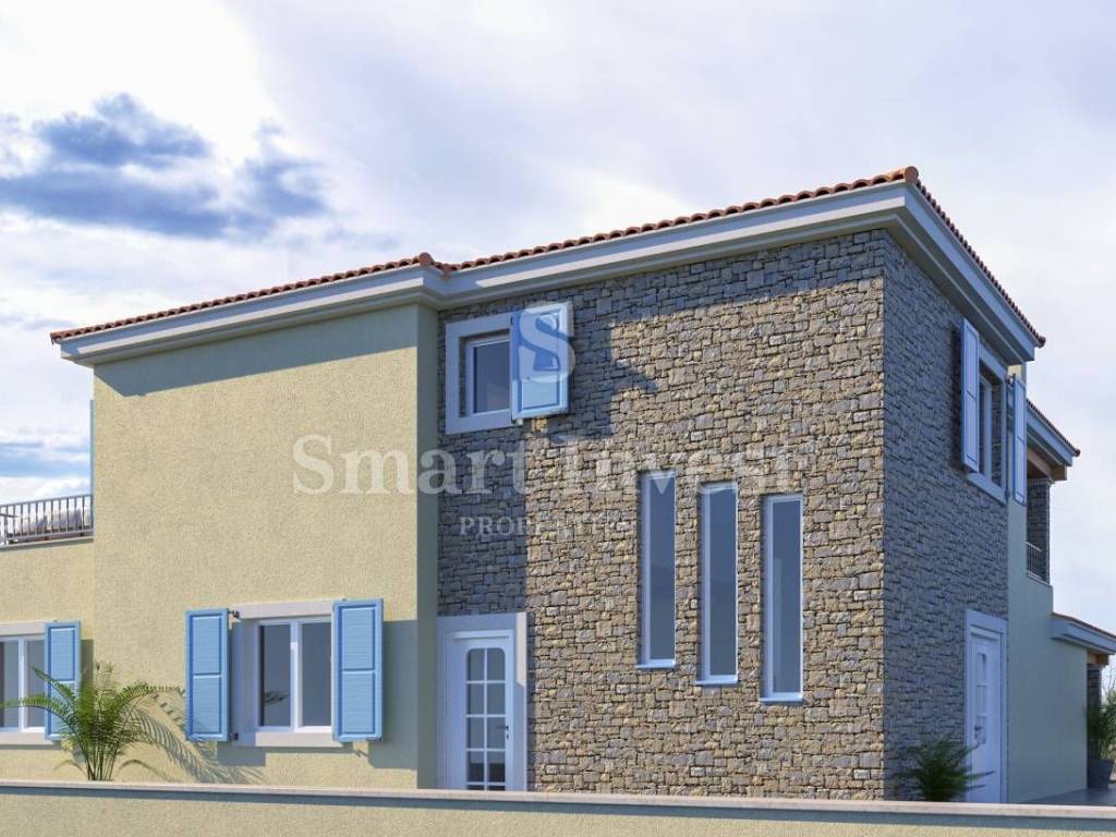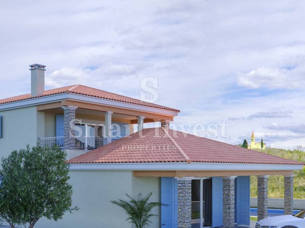 ISTRIA - BUJE vicinity. For sale is a beautiful 3-bedrooms villa with swimming pool on idyllic location on a hill with open views of the sea, vineyards and olive groves. The villa is under construction, estimated time of finishing is in the beginning of 2023.