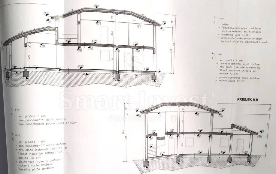 The villa of 260 sqm (308 sqm gross area) is situated on a land plot of 635 sqm, 3 bedrooms, 3 bathrooms + wc.