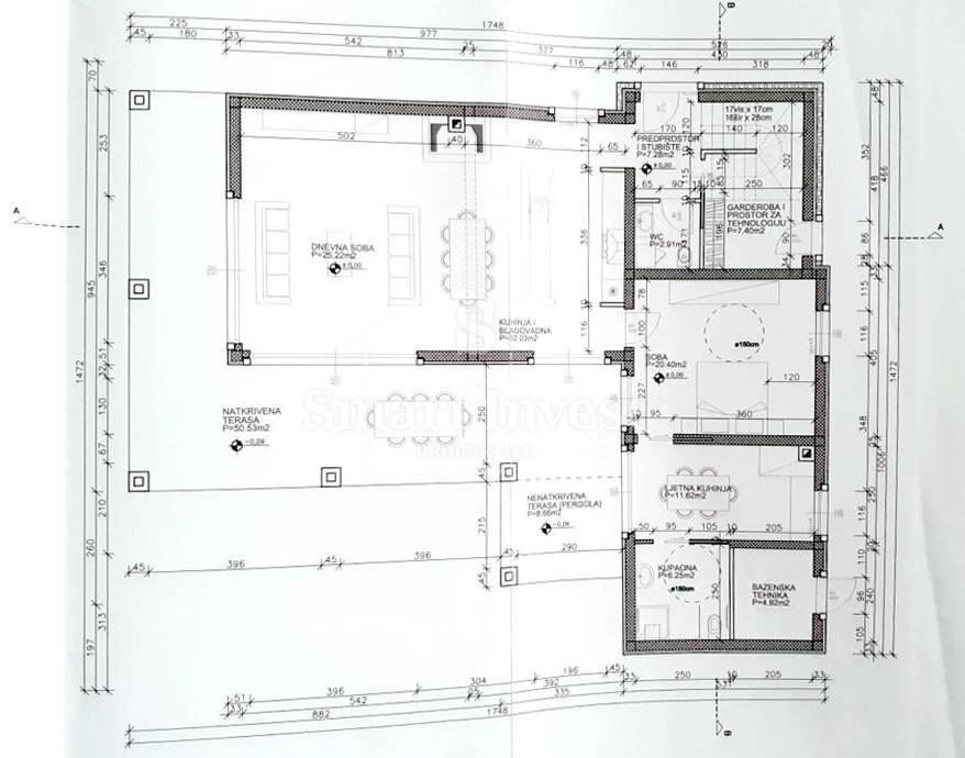 The villa will be equipped with underfloor heating system, built-in fan coilers and solar system for hot water.