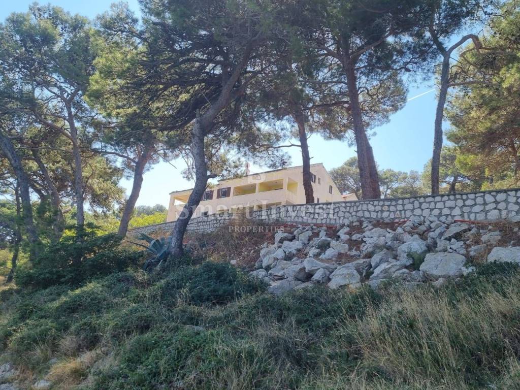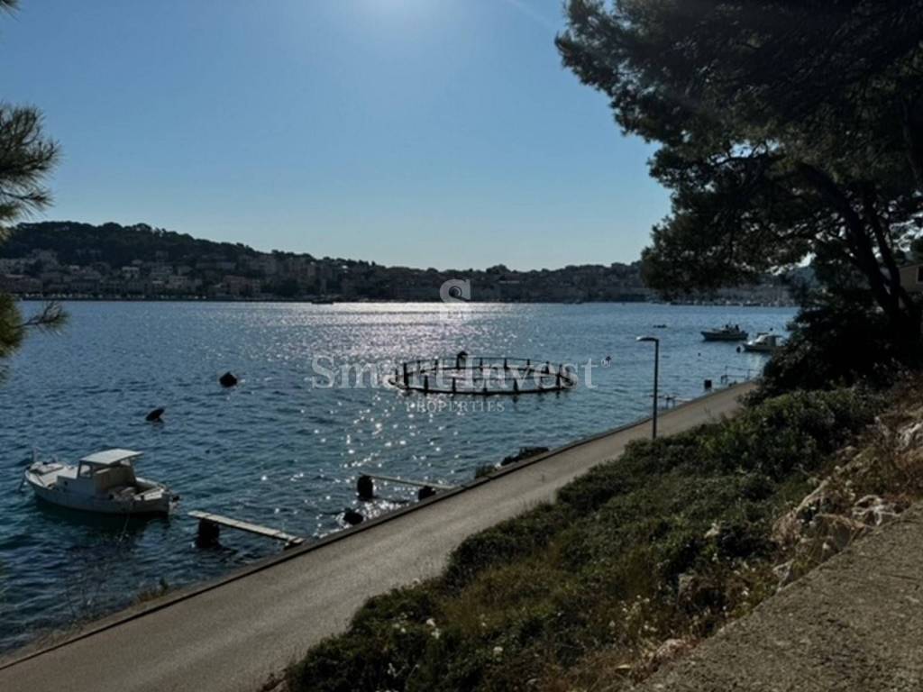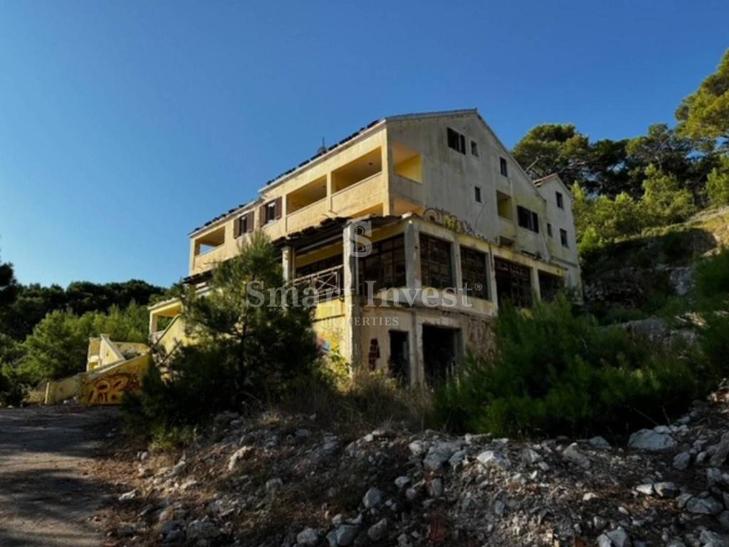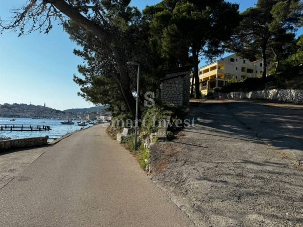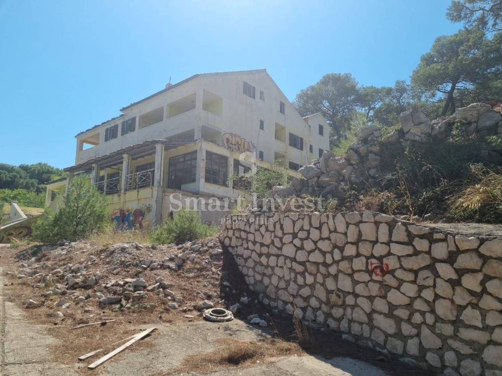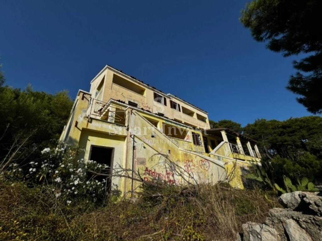 Na prodaji je građevinsko zemljište površine 2104 m2 na kojem se nalazi postojeća ruševna zgrada površine 510 m2 za potpunu rekonstrukciju s direktnim prilazom s sporedne prometnice. Zemljište se nalazi se prvi red od mora na odličnoj lokaciji.