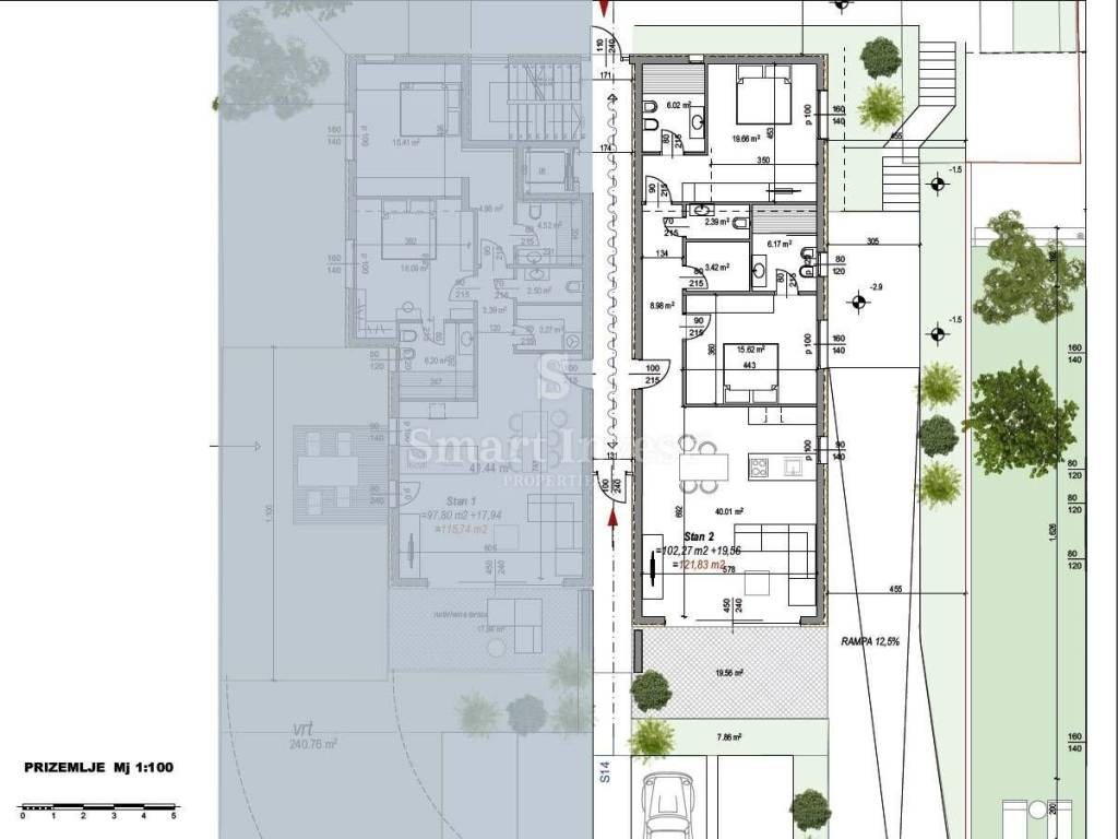 APARTMENT 2 ground floor 121.83 sqm + garden of 40 sqm + garage of 13 sqm + storage of 6.20 sqm