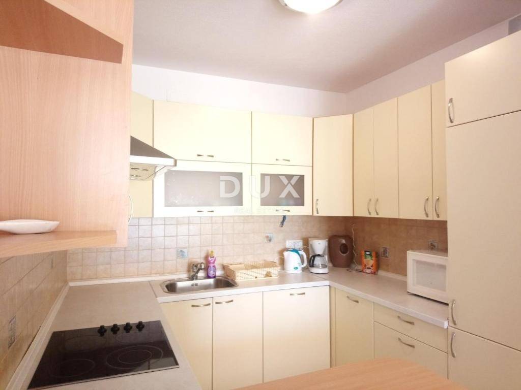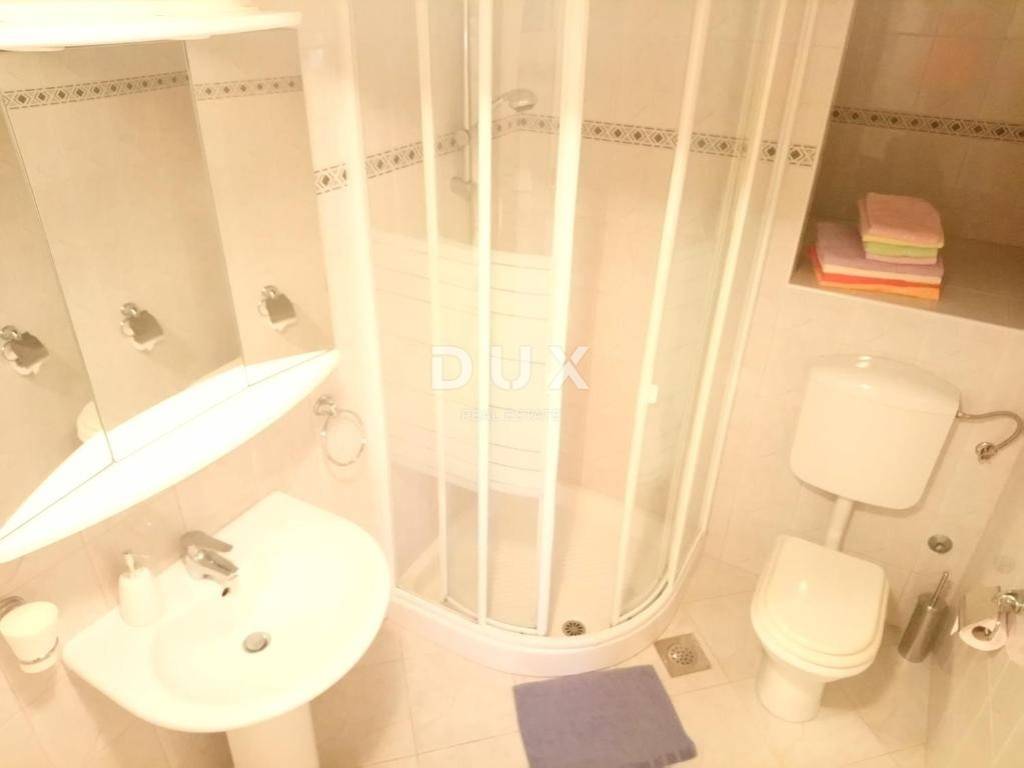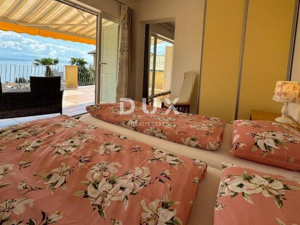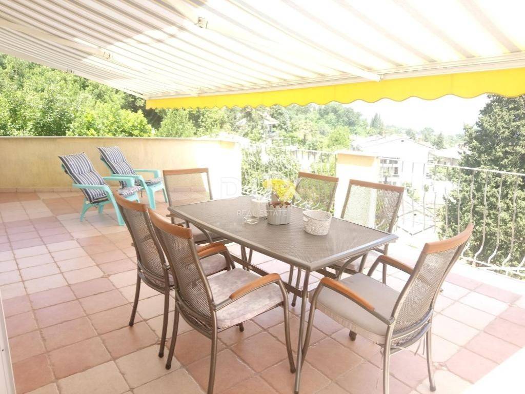 An exclusive apartment for rent in the center of Opatija, 75 m with an additional large terrace of 30 m, located on the high ground floor with a beautiful open view of the sea and the entire Kvarner Bay. The apartment is beautifully decorated and fully furnished, and consists of a spacious living room connected to the kitchen and dining room, hallway, two bedrooms, a bathroom and an additional small toilet. A special value of this apartment is the large terrace from which an impressive view of the Kvarner Bay is offered. Beautiful sliding walls ensure plenty of light and the atmosphere of a Mediterranean lifestyle. The south-facing bedroom also offers a sea view and direct access to the terrace. The apartment is equipped with air conditioning in each room and Norwegian radiators in the bathroom and toilet, and private parking and a garage are available. The price of long-term rental is 2000 EUR per month. The apartment is available from 01.10.2025. This property is an ideal home for those looking for peace, comfort and daily pleasure with a view of the sea. To arrange a visit to the property, call the agent with confidence.