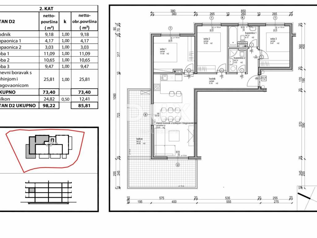 In the quiet village of Tara, just 350m from the sea and a ten-minute walk to the well-maintained beaches, there is a modern, top-quality new building with a total of 13 apartments. This unique apartment is located on the second floor of the building, which covers 85.81 m of living space and represents a combination of luxury, comfort and a superb view. APARTMENT DESCRIPTION Apartment D2 covers a net area of 85.81 m. The layout of the rooms is designed to maximize spaciousness and natural light: * Entrance hall with a designated area for a wardrobe * Open space living room a modernly designed space that combines the living room, kitchen and dining room into one. * Spacious terrace which extends next to the kitchen and dining room, ideal for socializing and relaxing with friends and family. * Then there are three comfortable bedrooms and two bathrooms. TECHNICAL CHARACTERISTICS OF THE BUILDING - The building was designed and built according to the highest construction and energy standards: * Anti-seismic structure * Three-layer PVC joinery * Silent sewage installations * Electric underfloor heating in all rooms of the apartment * Air conditioners in each room * High-quality 10 cm facade insulation (styrofoam and wool) * Elevator in the building * Security doors in the apartments * Top-quality water supply system (German TC pipes) ADDITIONALLY * The apartment has two private parking spaces, included in the price of the apartment. * Storage spaces are available with an additional purchase * Planned completion of construction and move-in: 12/2025. WHY CHOOSE THIS APARTMENT? This apartment is the perfect option for family life, a peaceful vacation in Istria, but also as a safe investment given the attractive location and quality construction. For any additional information or to organize a viewing, please feel free to contact us with confidence.