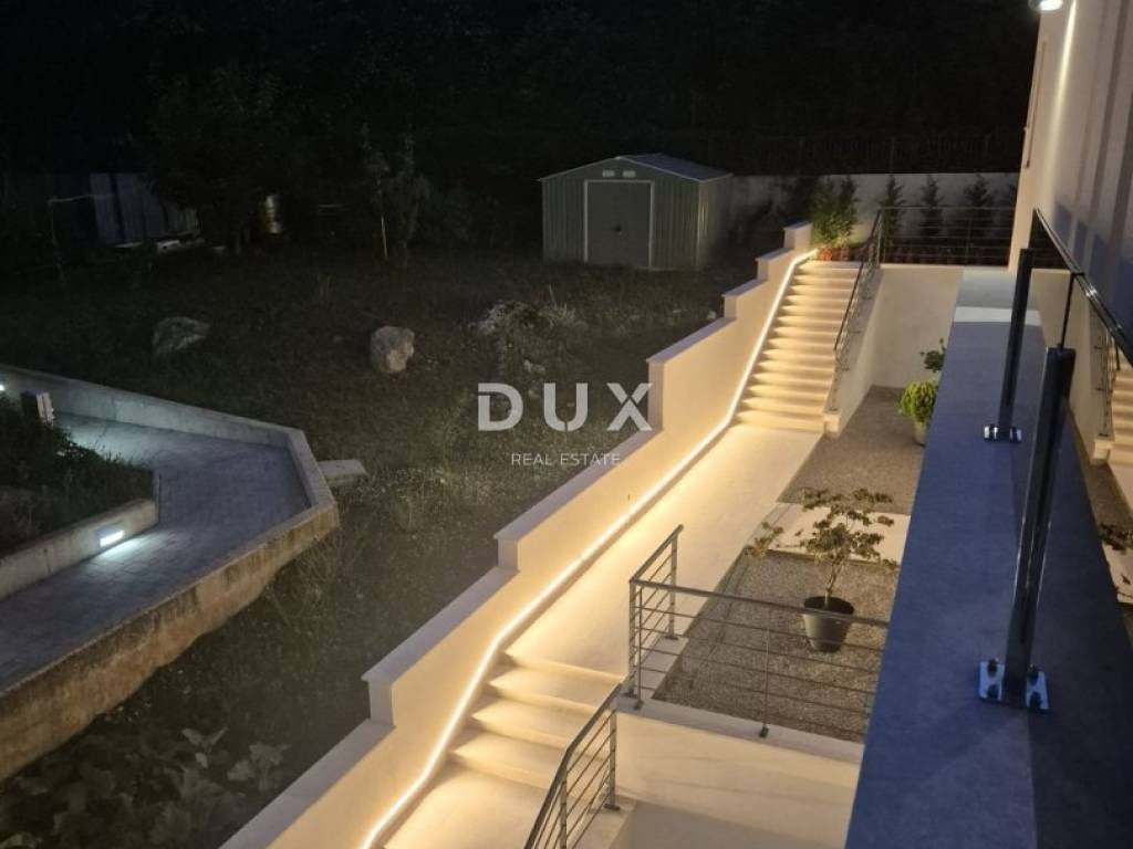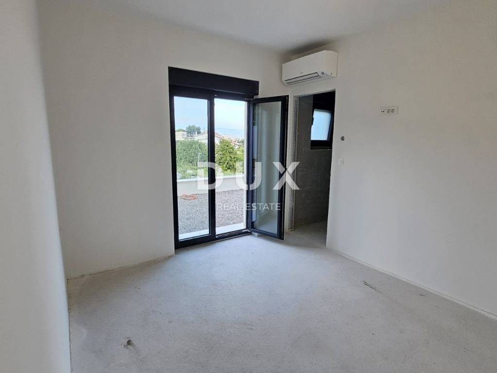 For sale is an exclusive apartment on the first floor of a modern urban villa with two residential units, located in an exceptional location in the very center of Lovran - only 300 meters from the sea and the famous Lungomare promenade. The property is located at the end of a quiet dead-end street, surrounded by modern new buildings, which guarantees a high level of privacy, security and a pleasant neighborhood. The apartment covers the entire floor and has a total net usable area of 94 m2. It is decorated in a high roh-bau phase, which allows the future owner to independently choose finishing materials such as flooring, tiles, sanitary ware and interior doors - an ideal opportunity to personalize the space according to their own taste and style. The floor plan has been carefully designed to provide maximum comfort and functionality. The open living room with kitchen and dining area opens onto a spacious covered terrace with a panoramic view of the Kvarner Bay, islands and the Mediterranean landscape. Large glass walls bring in plenty of natural light and further emphasize the feeling of elegance and spaciousness. The apartment includes two spacious bedrooms, one of which is a master with its own bathroom and dressing room, while the other has access to a terrace. The additional room can serve as a third bedroom, study or guest room. In addition to two bathrooms, the apartment also has an additional toilet, which contributes to everyday practicality. The apartment also comes with a 24 m storage room in the basement of the building, ideal for storing seasonal items, sports equipment and the like. The apartment is equipped with a heating and cooling system via a heat pump, with the option of underfloor heating, while top-quality thermal insulation and modern construction technology ensure high energy efficiency throughout the year. A landscaped and fenced garden with private parking for several vehicles further emphasizes the quality and comfort of this property. Thanks to its attractive microlocation, the apartment is ideal for permanent residence, a luxury vacation or as an investment in a high-class tourist rental. The proximity of the sea, restaurants, shops, schools, clinics and the Učka Nature Park makes this property extremely desirable - a rare opportunity on the real estate market in Lovran. Dear potential buyers, we are glad that you are interested in the properties from our offer. For more information and to arrange a viewing of the property, please feel free to contact us. Viewing the property is possible only with the signing of a real estate brokerage contract.