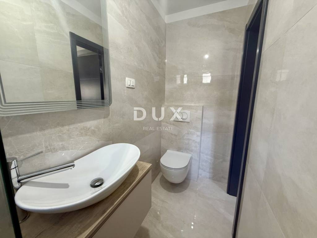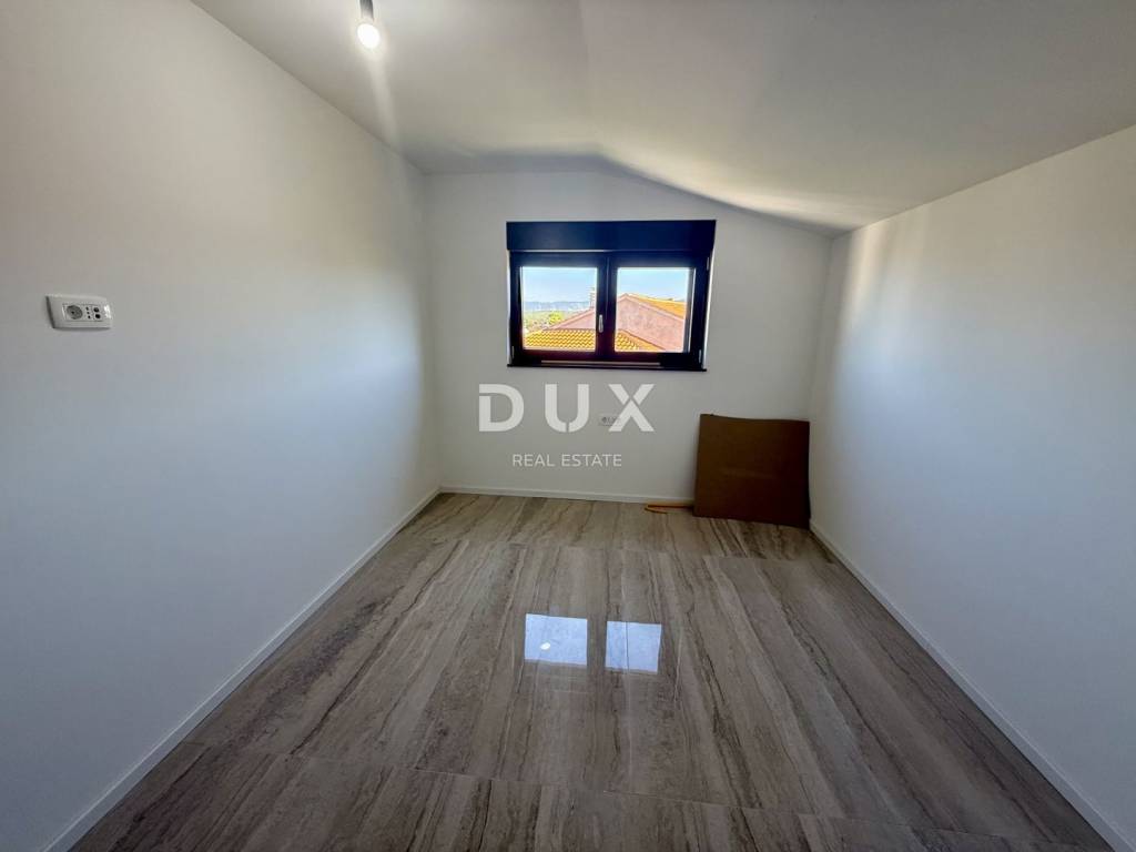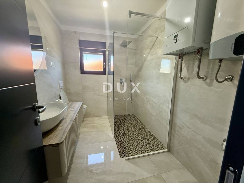 We are mediating the sale of a beautiful apartment in Malinska in a new building. The apartment is located on the 2nd floor of a luxurious new building with only 3 residential units. Very quiet location 600 meters from the first beach! The apartment consists of two bedrooms, a living room with a kitchen, a hallway, two bathrooms and a spacious covered terrace with a sea view! Very high-quality construction with anthracite PVC/aluminum joinery and electric blinds and mosquito nets. The equipment includes electric underfloor heating and air conditioning. The entire apartment has 160x80 ceramic flooring! A very beautiful and high-quality property waiting for the right buyer! Agent recommendation!