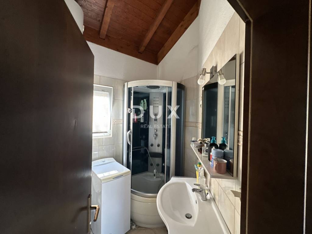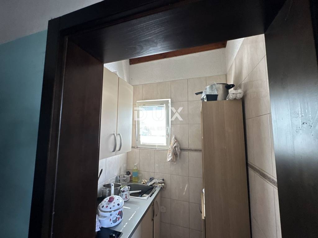A charming single-storey house in Murvica is for sale, located in a prime location along an asphalt road. The house covers 55 m of living space, and is located on a plot of as much as 600 m, which provides plenty of space and privacy. The yard is fenced and landscaped, with the possibility of parking two vehicles inside the yard. The interior consists of two bedrooms, a living room and a dining room that are connected into one pleasant unit, while the kitchen is located in a separate room. The property is particularly valuable due to the covered terrace, ideal for relaxing and socializing. The house requires minor renovation, but offers great potential for decorating according to your own wishes. Heating and cooling are via air conditioning. The spacious plot and beautiful yard give this property additional value, and the quiet location with excellent transport connections makes it an excellent choice for both family life and as a vacation investment.