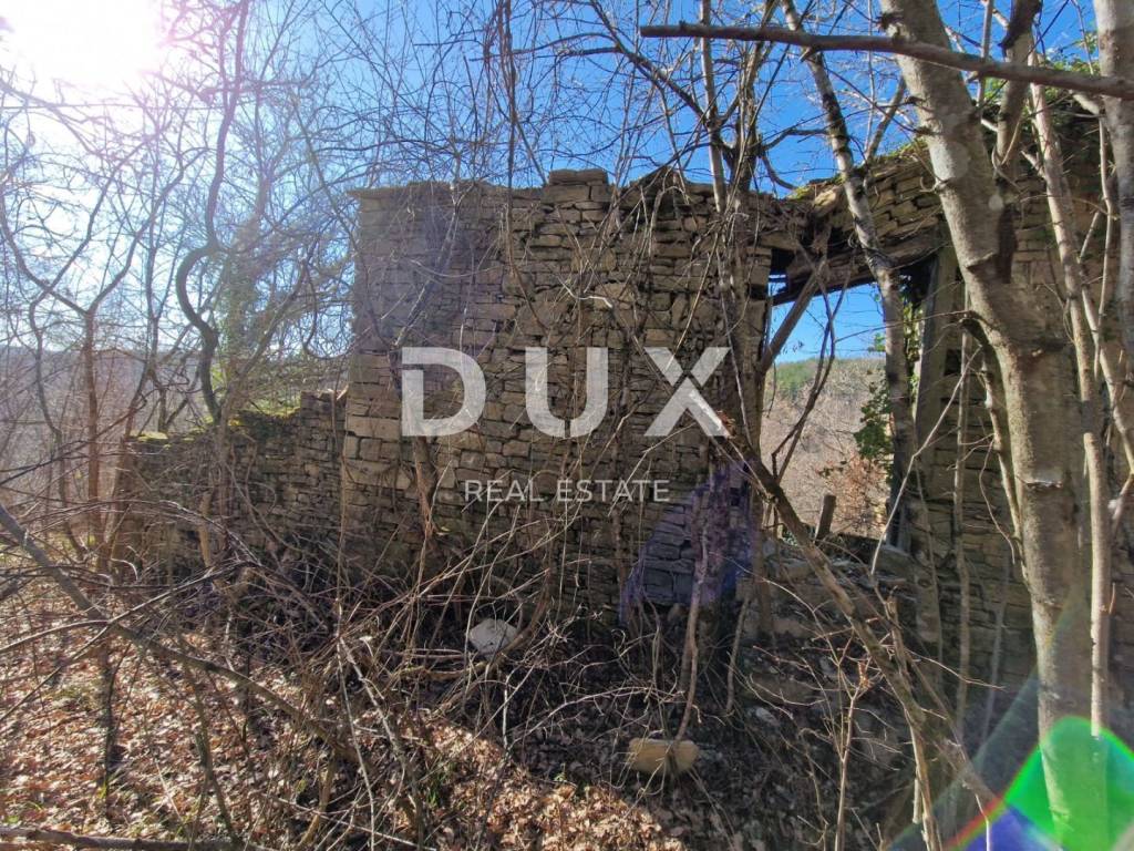 On an elevated location with panoramic views of untouched nature, there is an old Istrian stone house for complete renovation. It is surrounded by an impressive plot of land of as much as 34.609 m2, a combination of construction and agricultural zones.