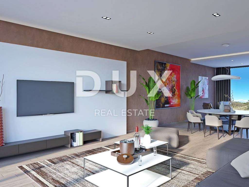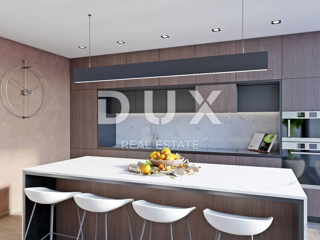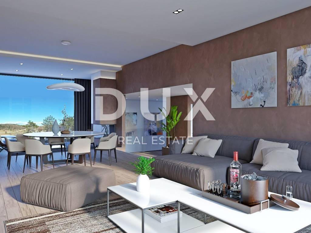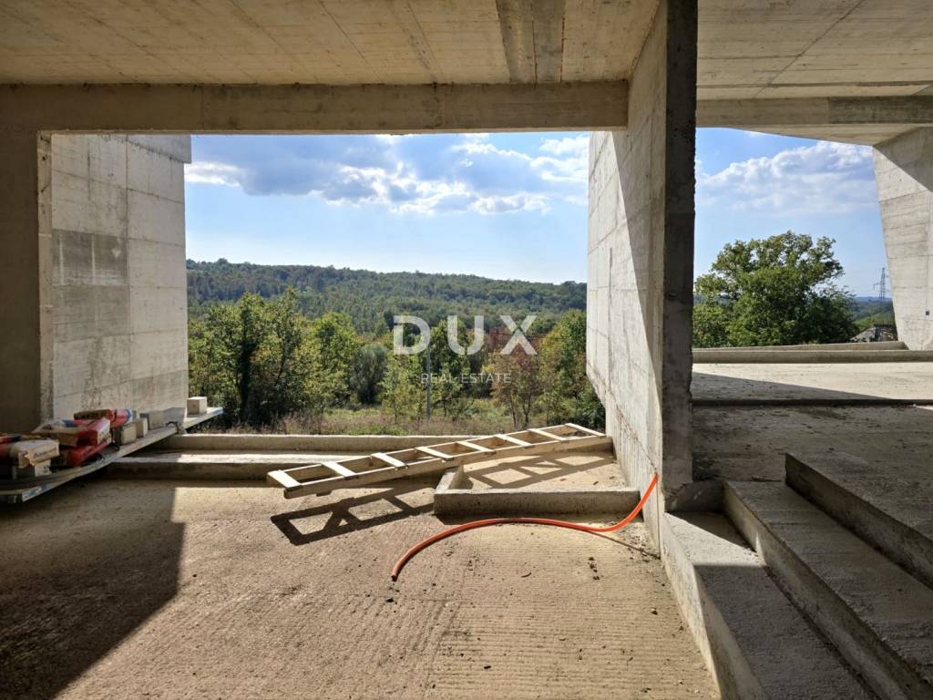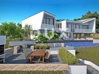 In the northwestern part of Istria, on the hilly slopes of the upper Bujština region, lies the medieval town of Momjan. Dominant in the ancient past, today it stands out as the wine pearl of Istria; a real mecca for gastronomes and wine lovers because some of the best taverns and wineries in the whole of Istria are located nearby. Immersed in the picturesque nature of the green kingdom of vineyards and olive groves woven into the picturesque hills, above the valley of the Argilla stream, the town of Momjan and its friendly inhabitants live the tradition of Istria at every step preserved within family taverns, wine cellars and remnants of the rich history of the Bujština region. Perfect harmony, almost unreal, as if from a fairy tale. Surrounded by vineyards and olive groves, a spectacular villa in an extraordinary location under construction is for sale. Moreover, the location of the property is fascinating, within walking distance are the best wineries, craft breweries, olive oil producers and renowned restaurants. Every detail of this elegant property has been carefully designed and the result is a first-class property that represents a haven for true hedonists. Geometric shapes give a special visual character to the building itself, which at times even seem illusory, and the combination of stone and glass has achieved an elegant, luxurious and extremely modern design that fits perfectly into the nature of the location itself, which is typically Istrian. With its contemporary exterior design and interior concept that provides a high standard of living, it offers exceptional comfort and functionality and absolute privacy. The grandiose usable living area of 391.14 m, which extends over two floors, radiates light, reflecting the clarity of lines with a perfect balance of outdoor and indoor space. The spacious open-concept living area is located on the upper floor and is complemented by an elegant dining room and a 1st class kitchen. The upper floor layout is complemented by three bedrooms with en-suite bathrooms, a pantry and a guest toilet. All rooms have access to balconies. The ground floor contains a bedroom with its own dressing room and bathroom, a gym with professional fitness equipment and a relaxation area with a sauna connected to the bathroom, a technical room and a laundry room. In addition to functionality, the extremely professional planning pays special attention to the boundaries between the interior and exterior, and due to the cascading terrain, ideal communication between the garden and the villa has been achieved. On the ground floor level, there are two heated overflow pools of 70 m with a sunbathing area connected to the summer kitchen and grill area. The last level of the garden contains a garage of 43.13 m and two parking spaces. The stated price refers to the unfinished construction of the residential building up to the rough construction phase, which includes preparatory work, excavation and laying of foundations and construction of walls. The price does not include finishing work, carpentry or landscaping of the garden. Possibility of purchasing the property in the final stage of construction without furniture with a landscaped garden with a price adjustment. The seller of the property in question is a legal entity and the stated price includes VAT.